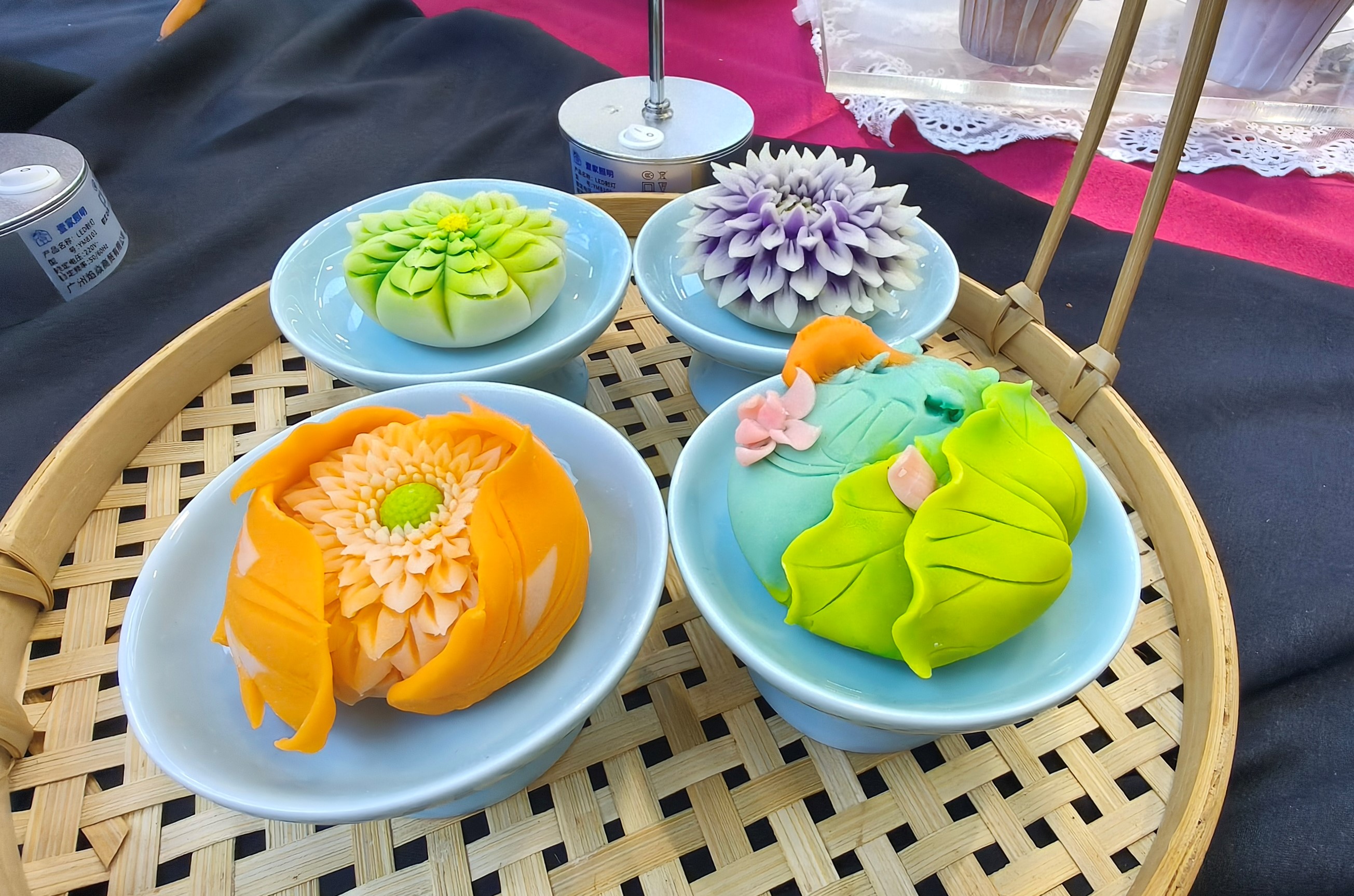 制作云腿月饼时,选手们精准把控各种馅料比例,随后手腕均匀发力,在掌心间揉成光滑均匀的圆团;制作滇式传统糕点的选手,指尖翻飞间将传统花样按压得清晰立体;曲奇饼干制作中,选手们熟练地称量原料、打发黄油、塑形切割;裱花时,选手们手持裱花袋稳如磐石,在蛋糕坯上勾勒出各式精美图案;烤箱旁,选手紧盯温度与时间,不时俯身观察色泽与形态,期待成品出炉……案板上五花八门的食材、打蛋器的嗡鸣、烤箱飘散出的香甜气味与选手们专注的神情,交织成了一幅最鲜活的赛场竞技画面。