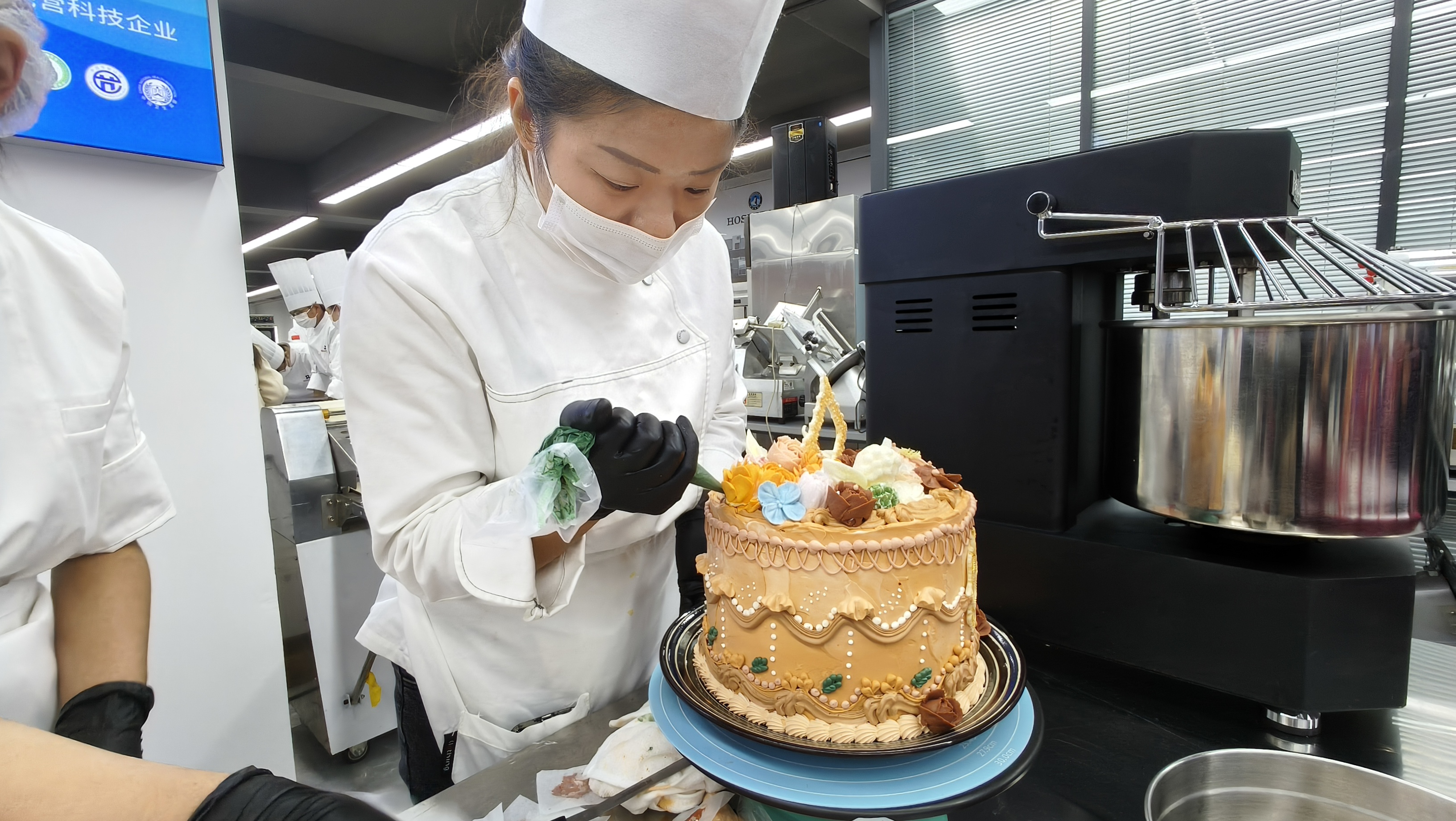 竞赛现场,面粉的清香、黄油的醇香与烘烤的鲜香交织弥漫。选手们全神贯注,技法娴熟,在规定时间内有条不紊地进行工序,如同制作艺术品一般将一道道精美的糕点呈现。