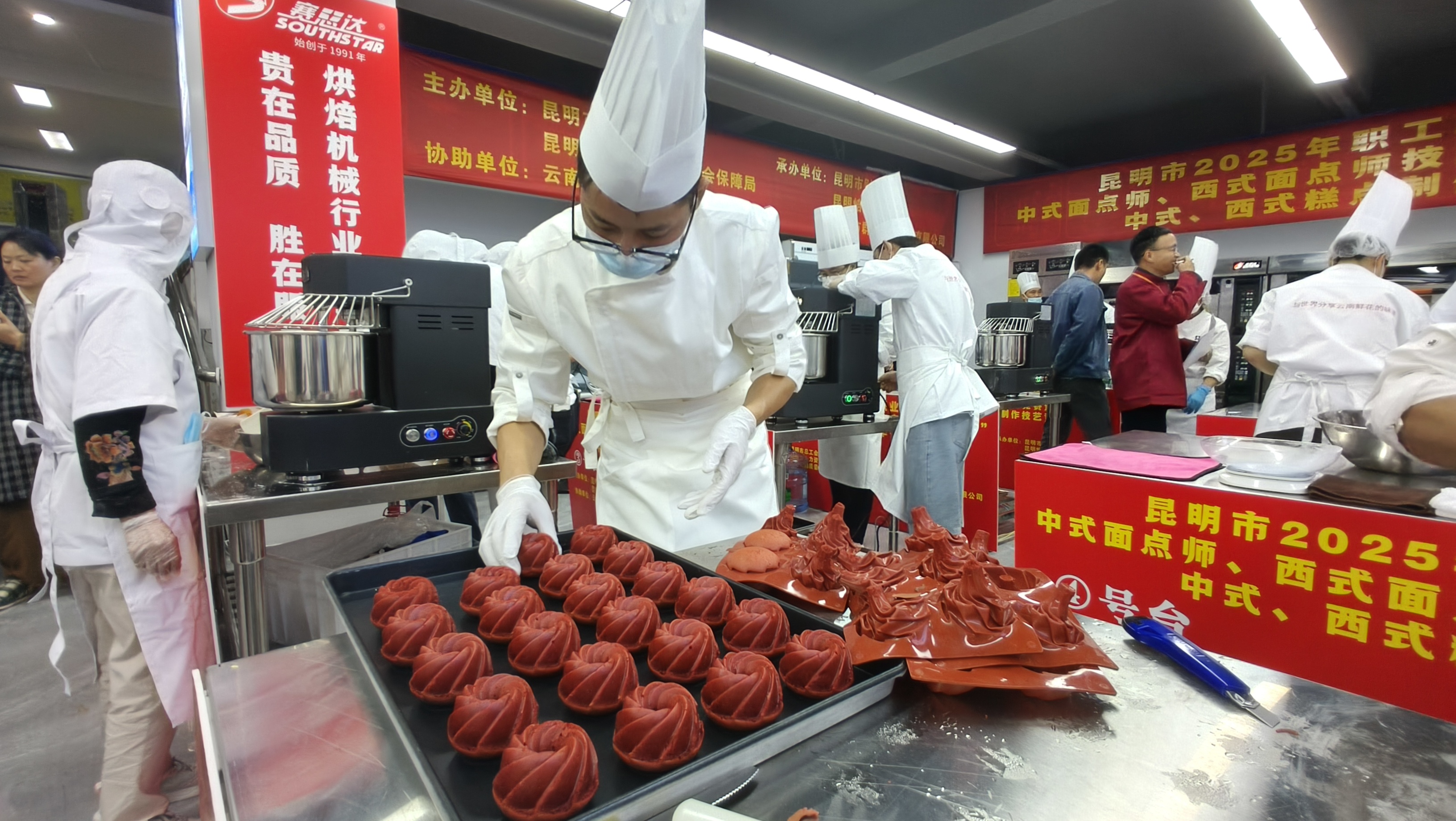 当面粉黄油遇上创意的火花,当精湛技艺碰撞炽热匠心,一场属于糕点焙烤能手的技能对决精彩上演!日前,由昆明市总工会、昆明市人力资源和社会保障局、昆明市财贸工会主办,昆明焙烤行业协会承办的昆明市2025年职工职业技能竞赛暨“群泰杯”中式、西式糕点制作技艺竞赛火热开赛,众多焙烤高手齐聚一堂,用匠心焙制诠释烘焙艺术的独特魅力。
