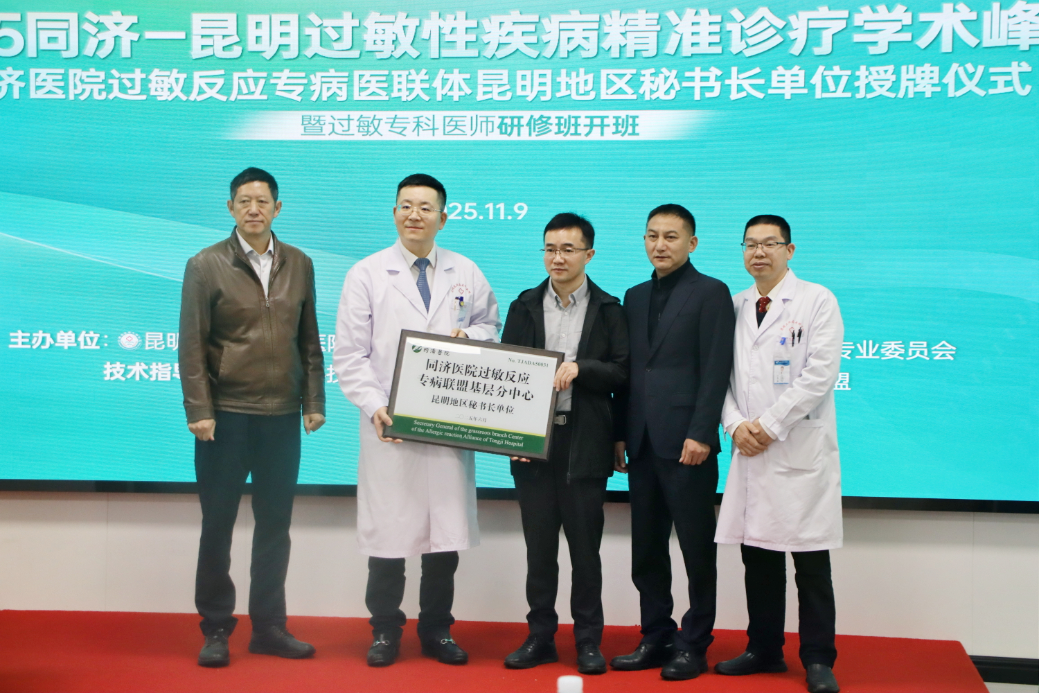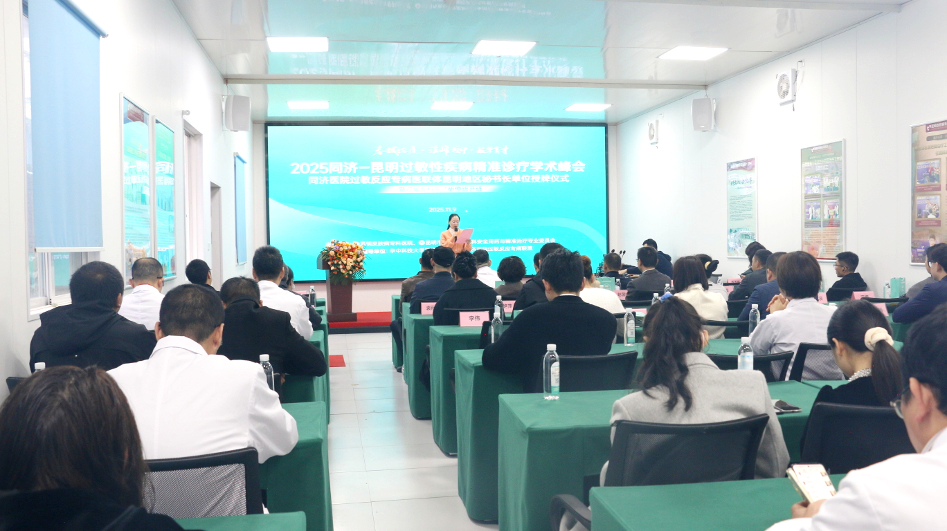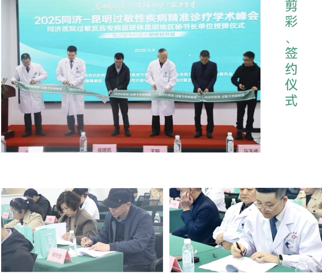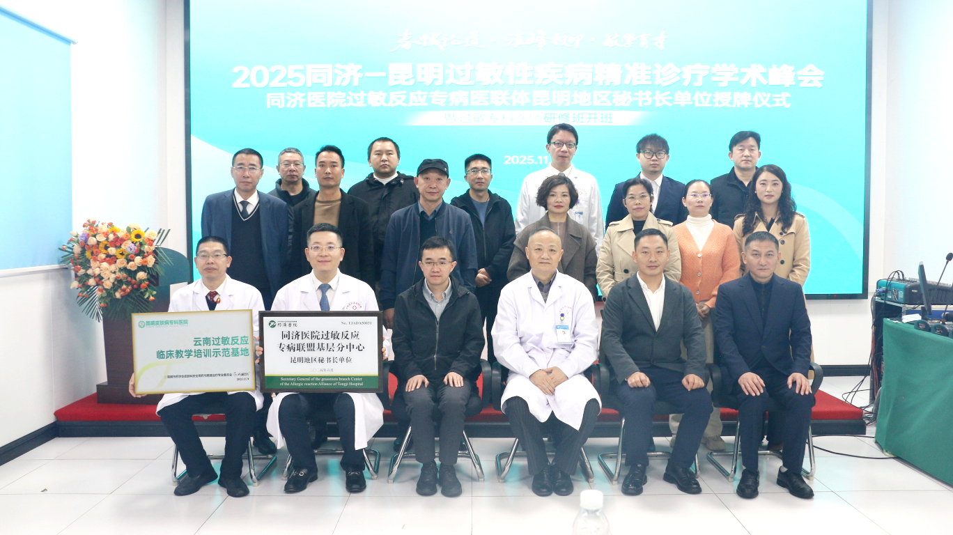 2025年6月,经同济医院过敏反应专病医联体严格审核,昆明皮肤病专科医院诊疗能力与学科建设获国家级临床专科认可,被正式授予同济过敏医联体“昆明地区秘书长单位”。11月9日,获授仪式及“2025同济-昆明过敏性疾病精准诊疗学术峰会暨过敏专科医师研修班开班仪式”在昆明皮肤病专科医院举办。