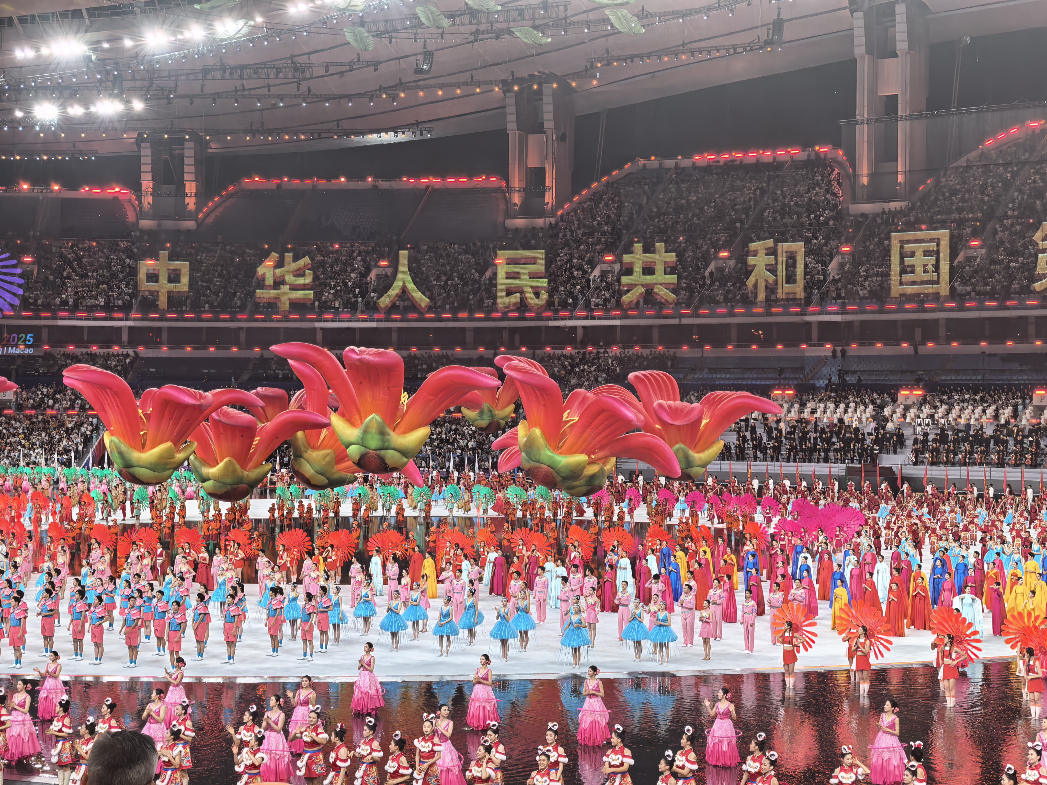 面对媒体,郎昆首先表达了对社会各界的感谢。“过去一年多来,我们导演组召开了数百场策划会议,前后调整优化了数十版创意方案和演出方案。”郎昆介绍,这支汇聚了艺术总监陈维亚、总监制刘伟强、总制作人王锐祥等全国顶尖艺术家、文化学者和专家的团队,始终秉持“简约、安全、精彩”的创排原则,力求在每一个细节中体现岭南文化的深厚底蕴与时代创新的蓬勃活力。他深情表示,当晚的精彩演出,凝聚了全体演职人员的智慧与汗水,承载着共同的文化理想与体育精神。