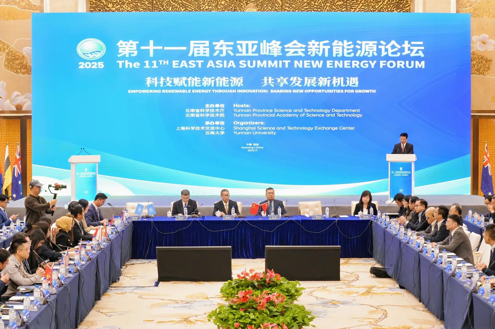 11月11日,以“科技赋能新能源 共享发展新机遇”为主题的第十一届东亚峰会新能源论坛在昆明举行。来自东亚峰会成员国的中国、泰国、老挝、柬埔寨、越南、缅甸、印度尼西亚、韩国、日本、美国、新西兰、澳大利亚、俄罗斯和联合国亚太技术转移中心的科技主管部门,各国企业、高校、科研院所和国际组织代表共180余人参加论坛。