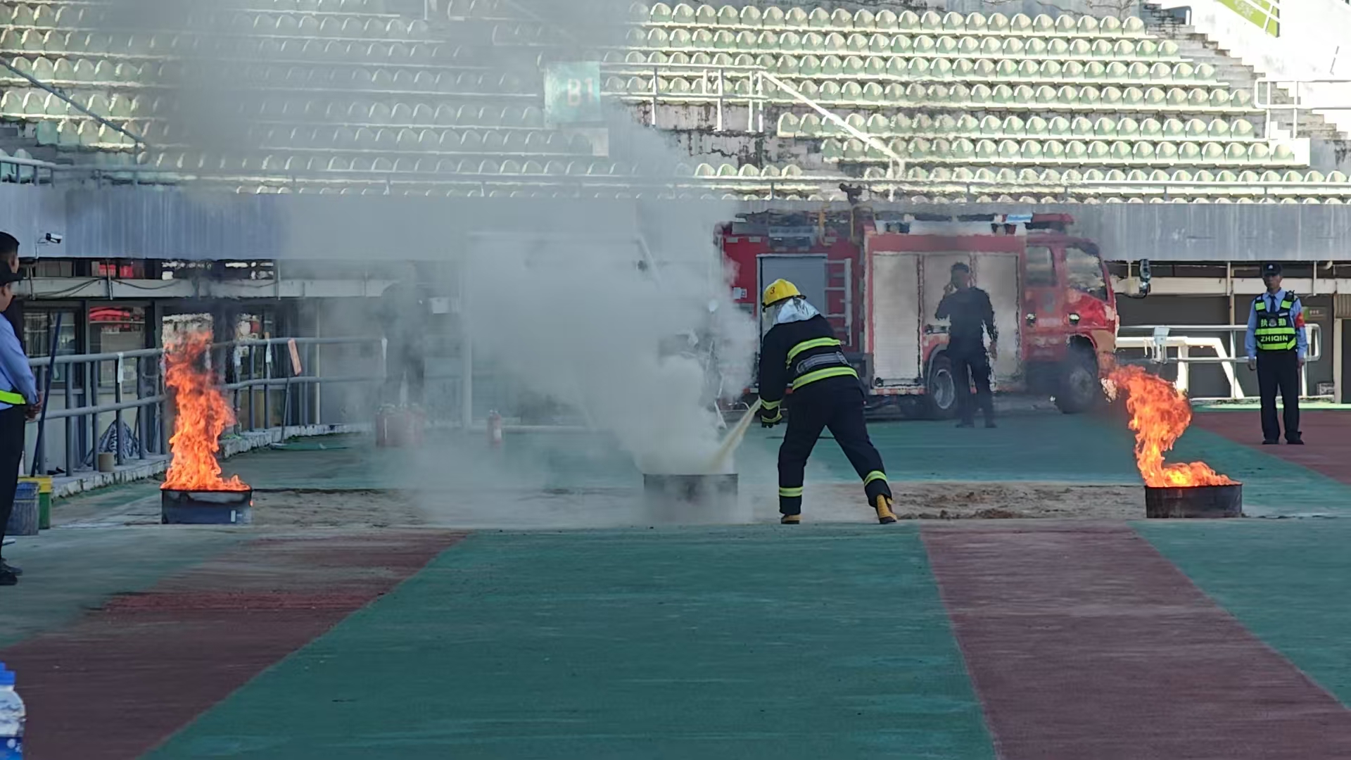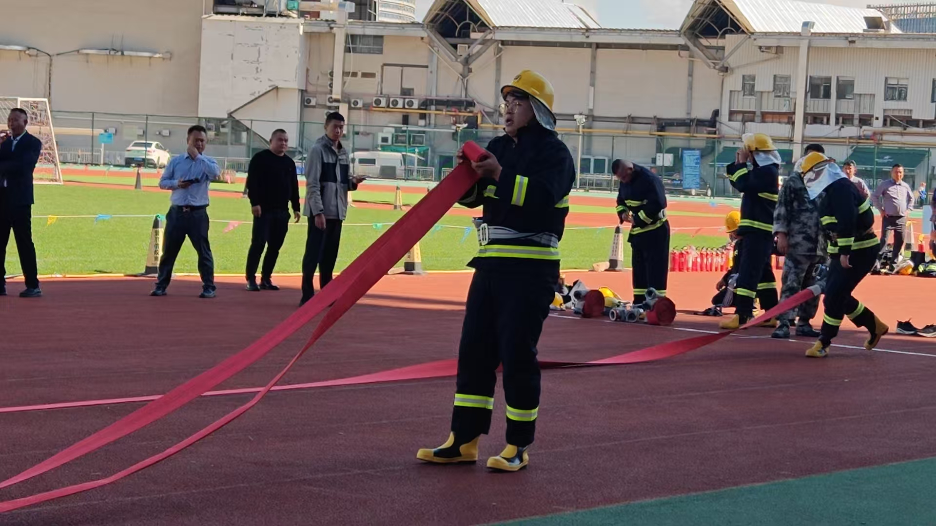 “从装备穿戴到水带连接,每个动作都有严格标准,例如水带不能弯折,灭火器需对准火焰根部。”评委一边记录评分,一边向记者解释,“物业人员是小区消防的‘第一道防线’,其操作是否规范,直接影响到火灾初期的处置效果。从今天的比赛来看,多数队伍已具备实战能力。”