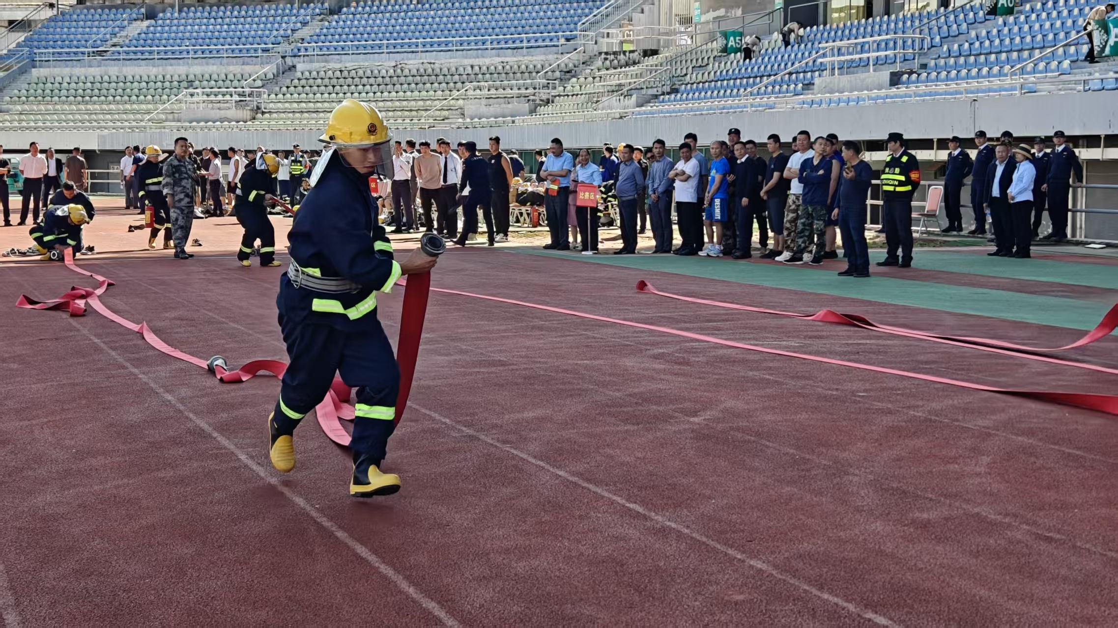 “预备——开始!”随着裁判一声令下,参赛队员迅速俯身,双手抓起消防服,十指翻飞之间,上衣、裤子、消防靴已穿戴整齐,整套动作仅耗时48秒。“以前训练时总紧张,今天在现场反而更专注,这都靠平时反复练习积累的真本事!”刚完成装备穿戴考核的李师傅额头渗着汗珠,脸上却带着自信的笑容,“我们守护着小区数百户居民的安全,技能每提升一分,居民的安全保障就多一分。”