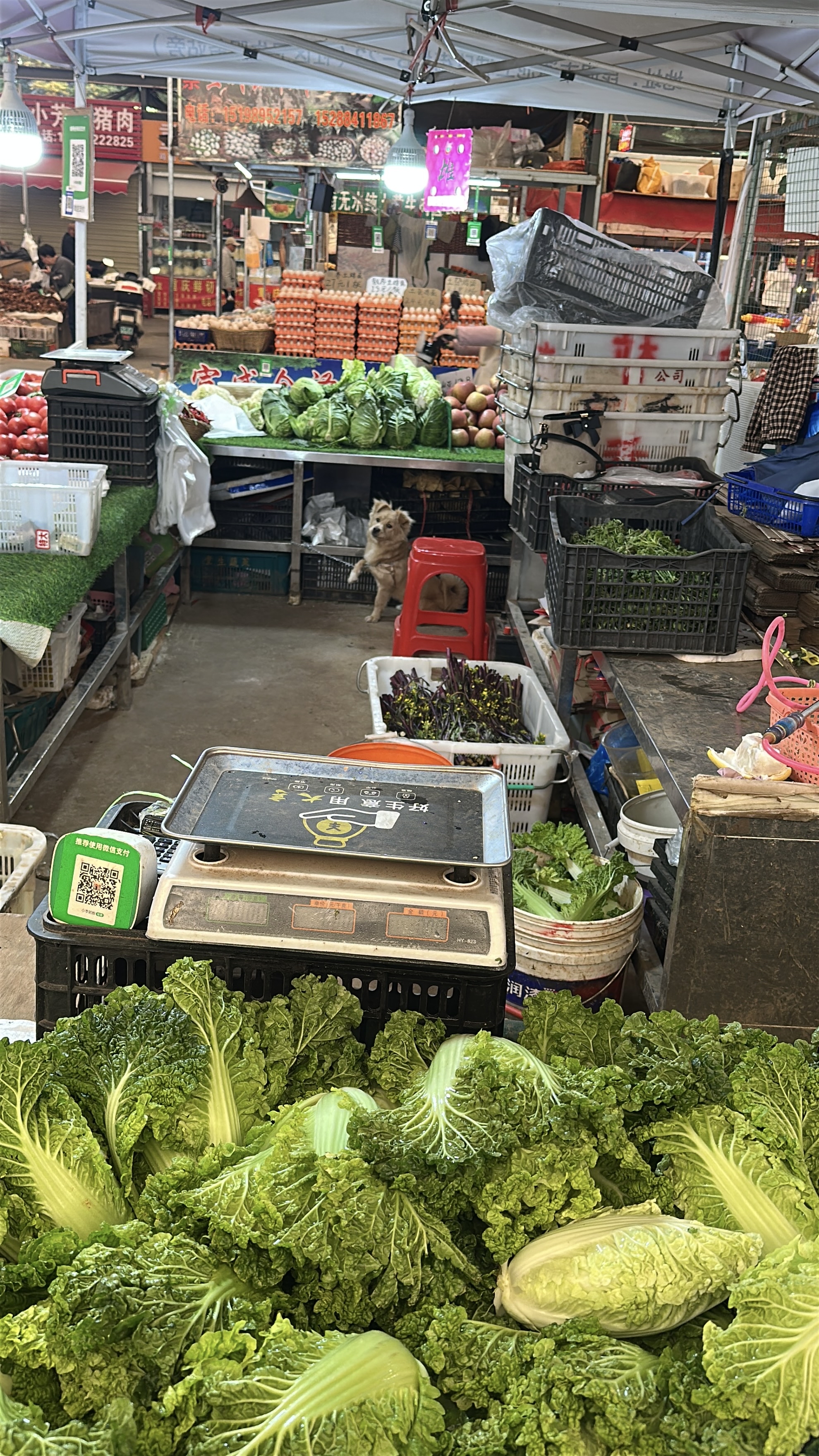 记者沿集市通道逐一走访,仔细观察了每一个售卖乳制品、饮品的摊位,却并未发现网传视频中的“自助购奶”摊点。不过,走访过程中,摊主暂时离开的摊位倒是时有出现:某卖白菜的摊位,摊主不在现场,一筐筐新鲜的白菜整齐码放着,筐子上贴着红色纸条,标明“一筐两元”;另有蔬菜摊,由一只黄色小狗“值守”……每当有顾客驻足这些“无人摊位”,都会自觉选取商品并付款,整个过程有条不紊,没有丝毫犹豫。一位正在买白菜的阿姨告诉记者,“我经常来这里买东西,摊主不在很常见,大家都习惯了,不会少给钱的,都是街坊邻居,互相都信得过。”而在集市中段的一个菜摊前,记者还看到了有趣的一幕:摊主直接搬了一把躺椅放在摊位旁,盖着薄外套呼呼大睡,摊位上的蔬菜码放整齐,仅当有顾客询问,摊主才会睡眼惺忪地醒来应答。