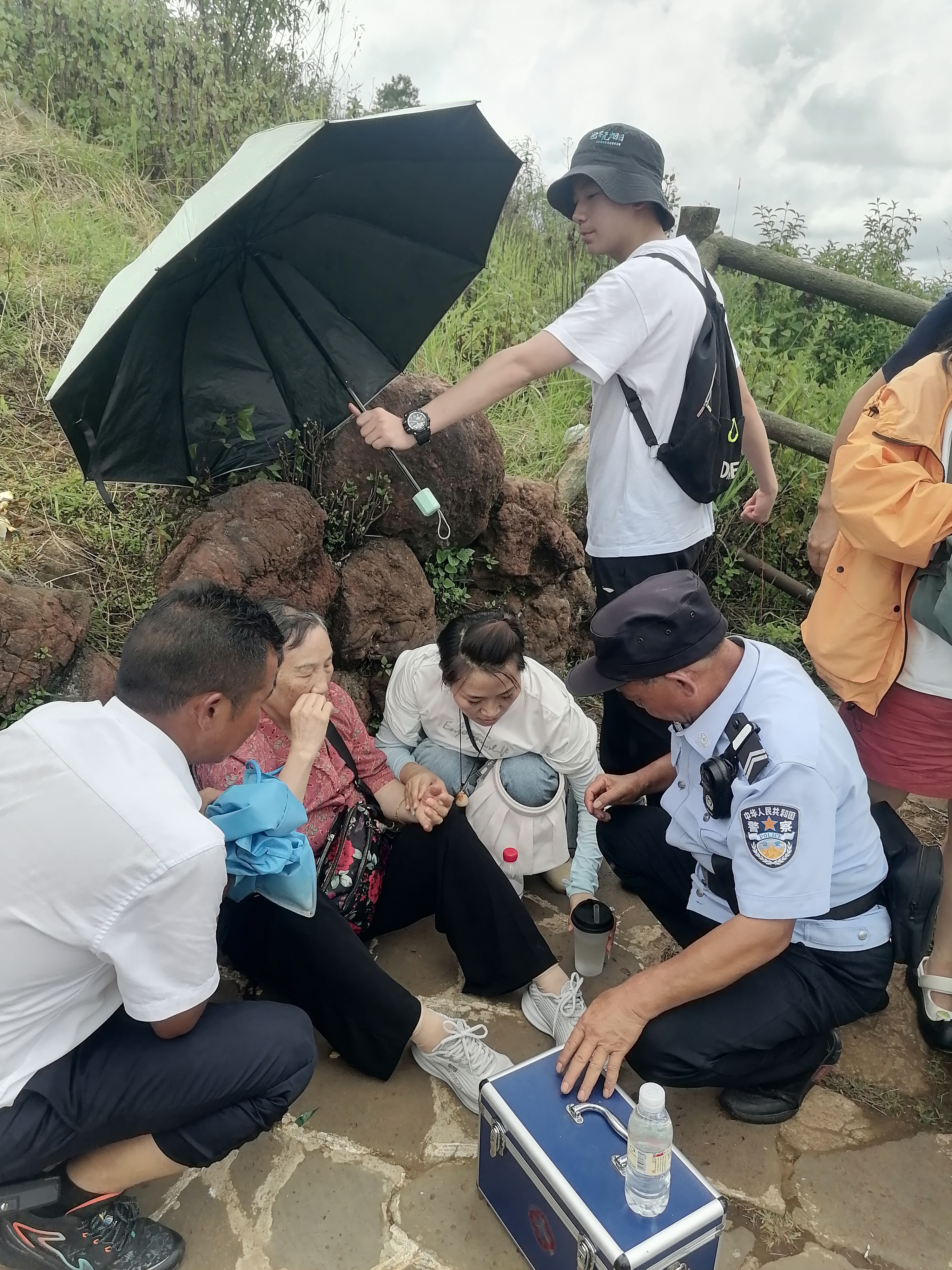 “我们正准备报警求助,想不到你们就到身边了!”“见到你们就安全了!”这是8名被困火山顶的游客见到民警时说的话。2024年8月23日,火山公园忽然乌云密布、狂风雷电不止,景区能见度骤然降低,警务室民警通过视频巡逻发现火山顶还有8名游客被困,无法下山。民警迅速组织工作人员前往救助,及时将游客转移至安全场所。