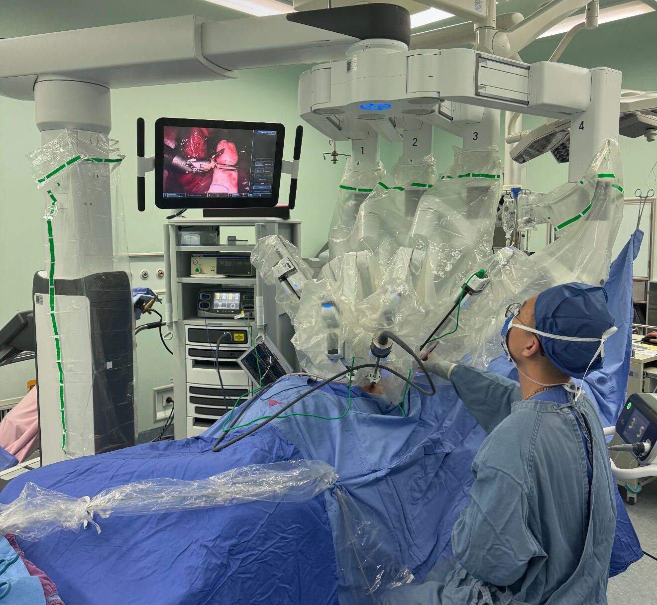 医生正在操控手术机器人在微创外科技术日益精进的今天,如何将多种前沿技术深度融合,真正惠及患者,正成为衡量外科团队实力的新标杆。近日,云南省第一人民医院(以下简称“省一院”)胸外科在全省率先运用达芬奇机器人和荧光染色技术成功实施胸腹腔镜联合食管癌手术(Lvor-Lewis),标志着医院在该领域迈出了突破性的一步。