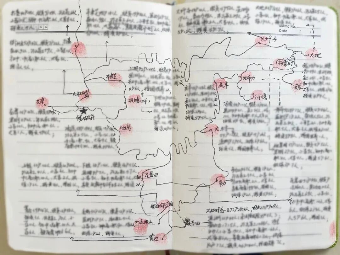 付鑫泳的“村情图”在镇上广为人知。在一次工作汇报中,当其他人还在翻查资料时,他已精准报出各项数据,在众人惊讶的目光中,他展示了那幅绘制在笔记本上的地图上面清晰标注着每家每户的位置、家庭状况、就业情况等详细信息。