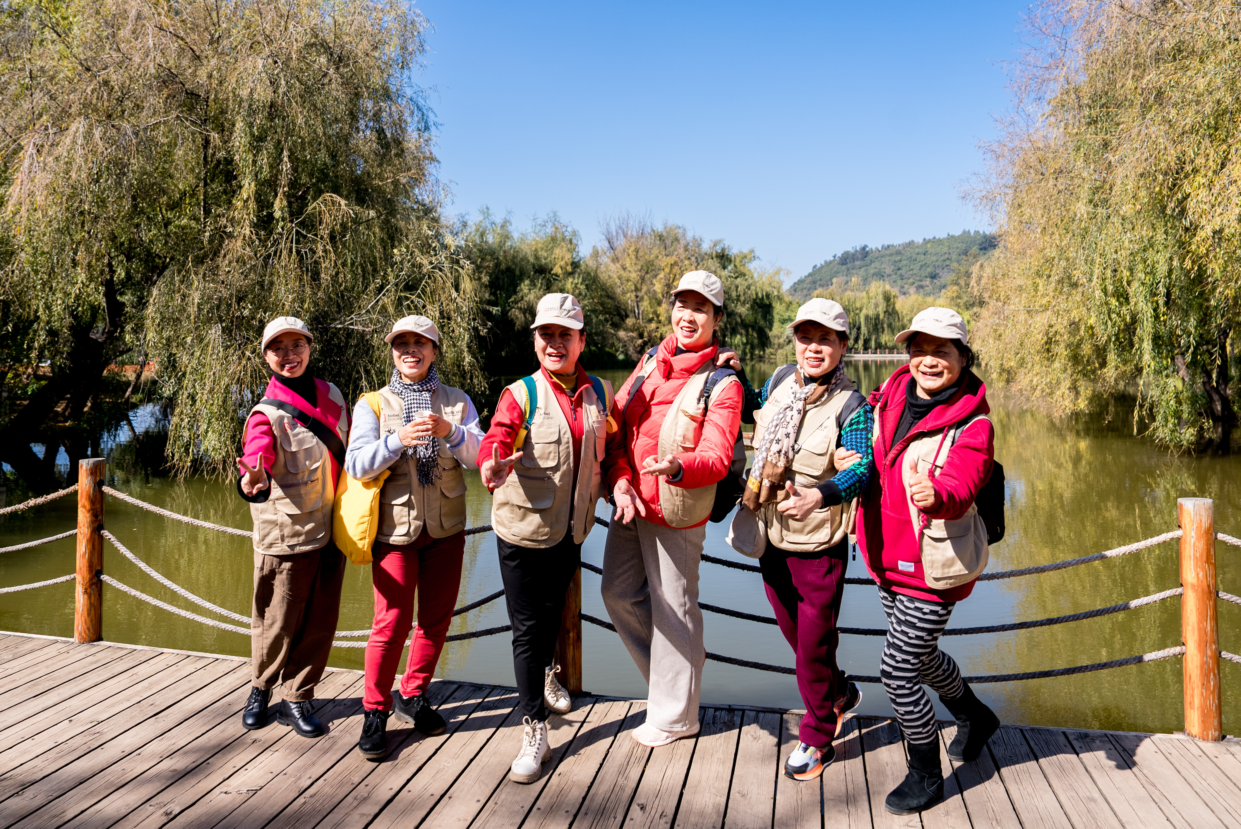 本次活动在风景秀丽的抚仙湖月亮湿地公园开展,柏德口腔邀请老会员代表,通过徒步、养生操、健康讲座与“金致实验室”互动体验等形式,开展了一场融合自然、健康与科普的沉浸式身心健康之旅。