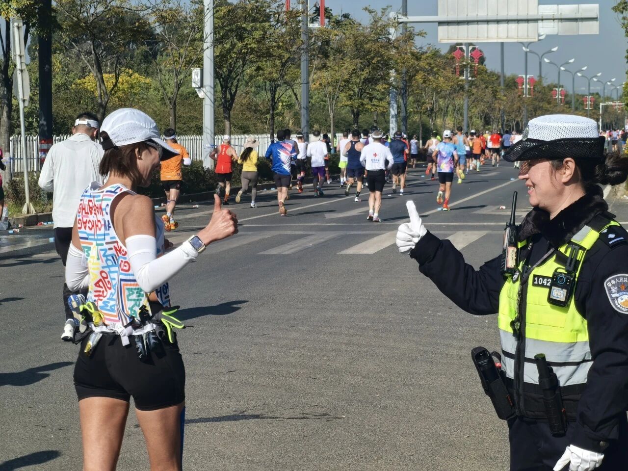在这场赛事中,有一群让人倍感安全的参赛者,他们是来自全国各地的“警察护跑团”,为更好服务参赛选手。