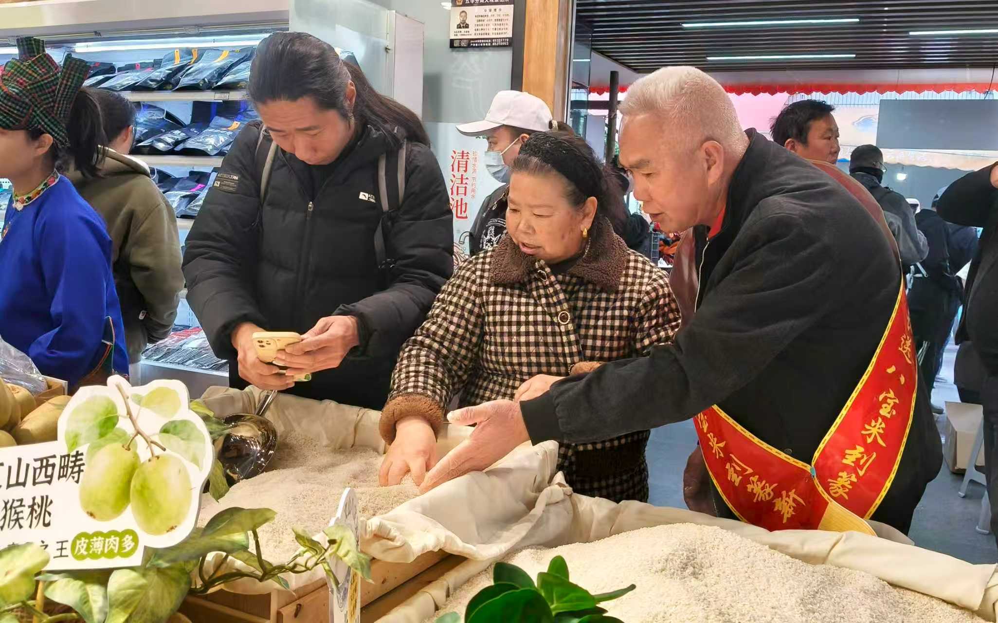 “我们这个米,一年只种一季,一辈一辈传下来的种法,没有任何添加,每一粒都是最地道的文山味道。”八宝贡米的摊位前围满了市民,广南八宝镇板幕村老村长王永跃用最淳厚的乡音给顾客们介绍家乡的宝贝。