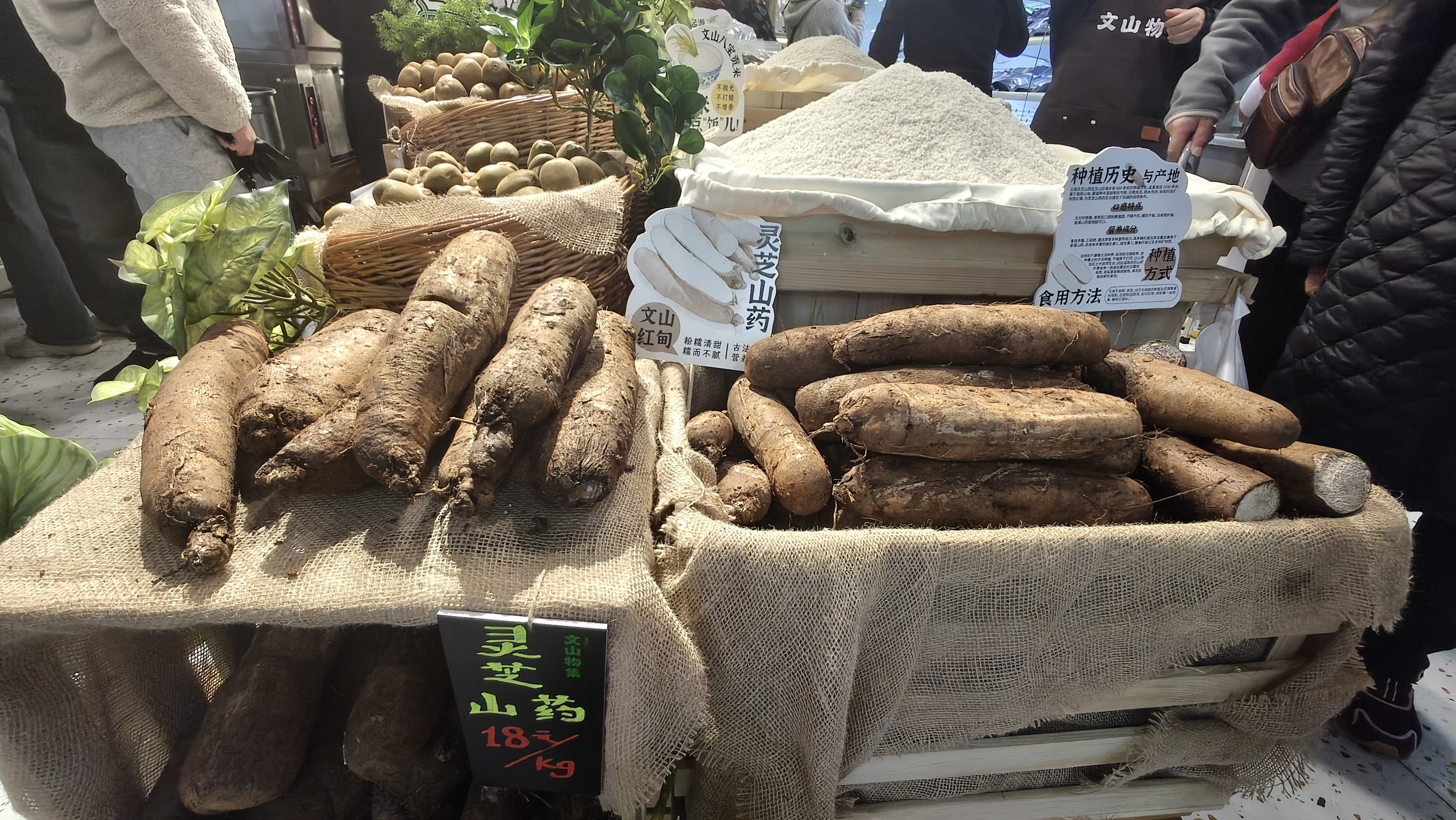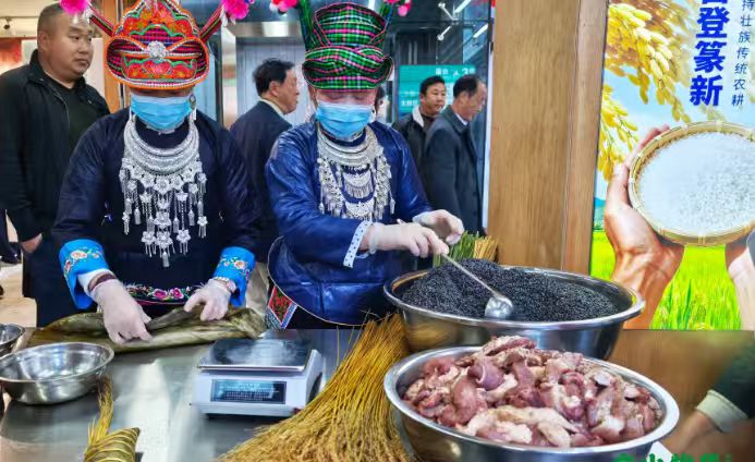 除了八宝贡米,高峰牛肉、铁厂腊肉等原生态食材也备受好评。据悉,高峰牛肉来自文山高峰山区的散养牛群,那里山清水秀、植被丰富,牛群以天然野草为食,生长周期长,因而肉质紧实、鲜嫩多汁,营养丰富;铁厂腊肉则采用传统柴火熏制工艺,选用本地土猪后腿肉,经腌制、熏制、风干等多道工序制成,色泽红亮、咸香醇厚,肥而不腻,是文山人喜爱的传统美食。此外,林芝山药、养生三七酒、黄肉猕猴桃、火烧辣椒酱等产品也各有特色,咨询、选购的市民络绎不绝。