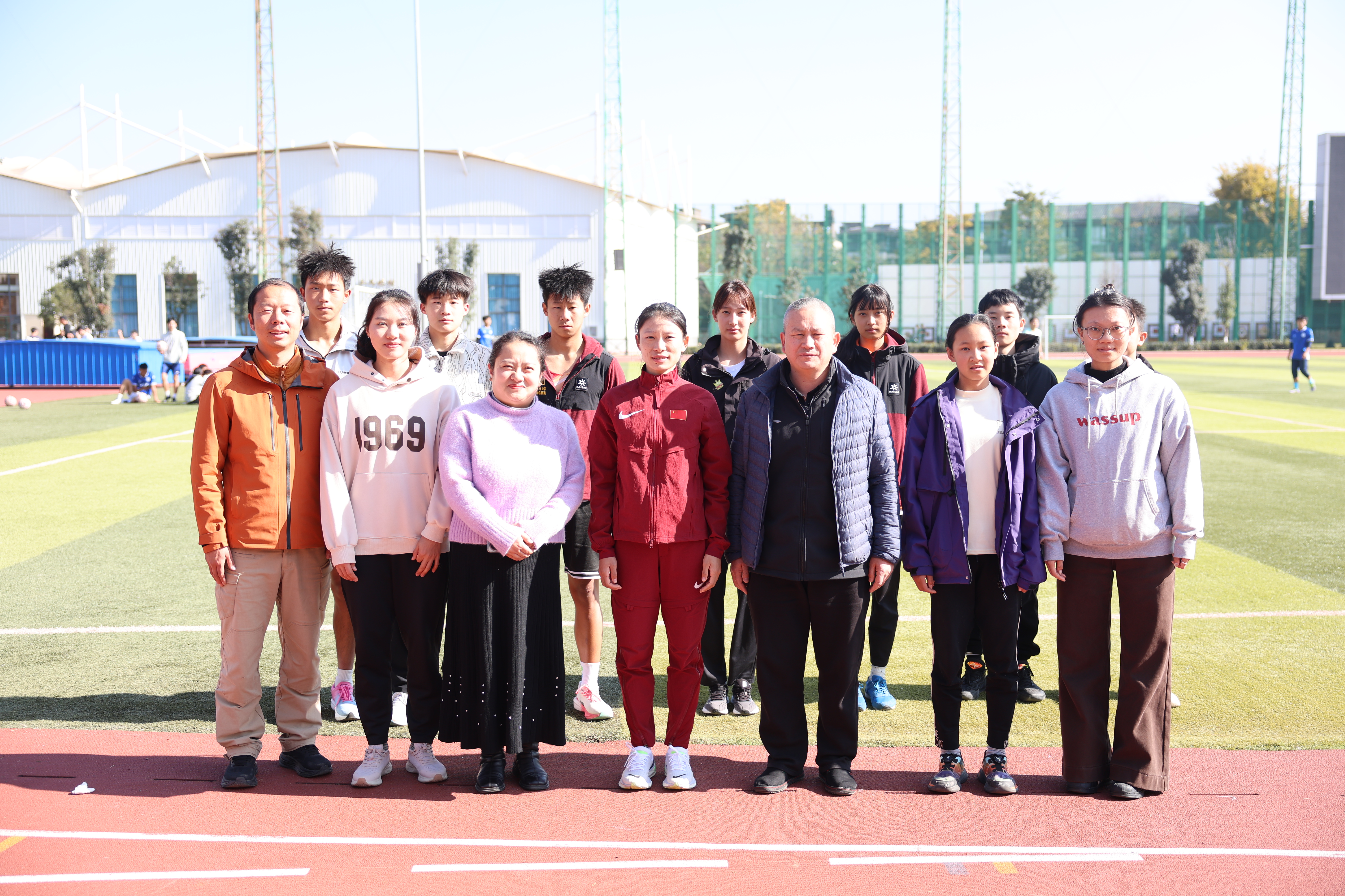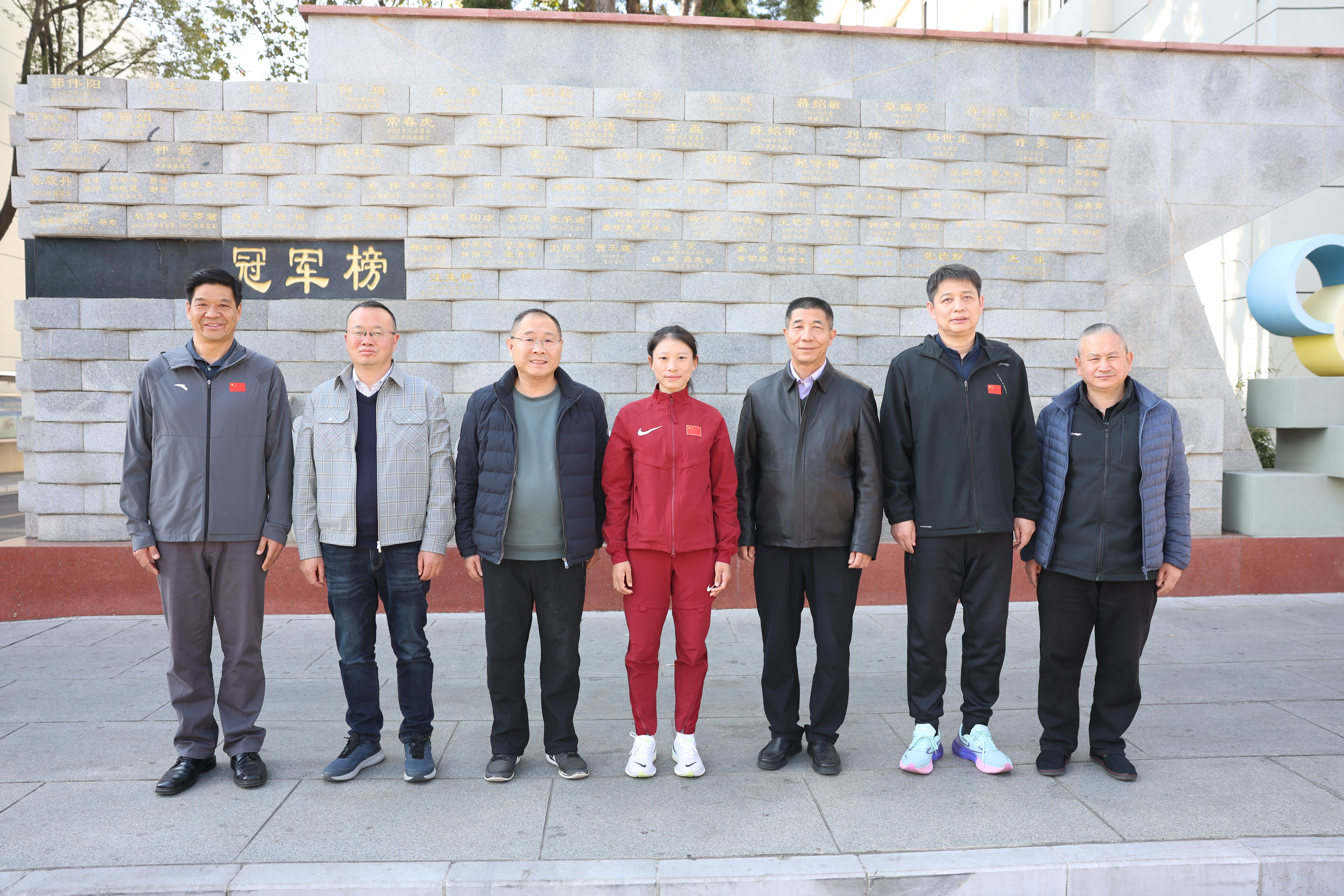 张德顺先后参观了冠军墙、校史馆、攀岩基地、廉洁文化广场、田径场。在田径场上,同学们见到张德顺后激动不已,纷纷围拢同她合影留念。张德顺还看望了黄丹和徐敏燕两位老师。