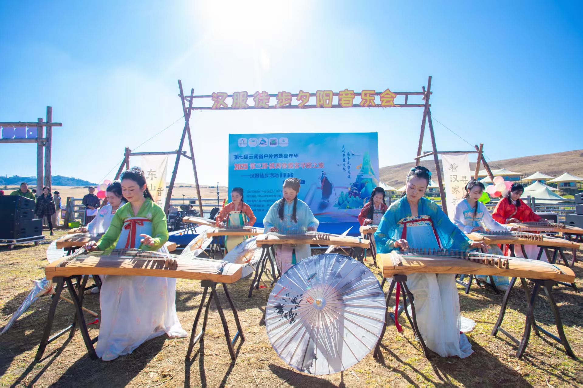 开幕式上,身着传统汉服的琴乐爱好者以古筝演绎《万疆》,悠扬乐声与磅礴旋律交织,既抒发了对祖国山河的热爱,更传递出对民族精神的礼赞与文化传承的坚定信念。舞台之下,各式汉服争奇斗艳,襦裙飘逸、袍衫庄重,成为流动的中华传统文化展示长廊,让现场观众直观感受千年文明的独特魅力。
