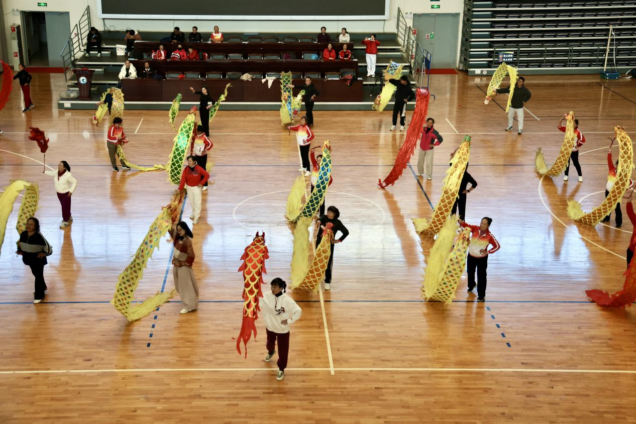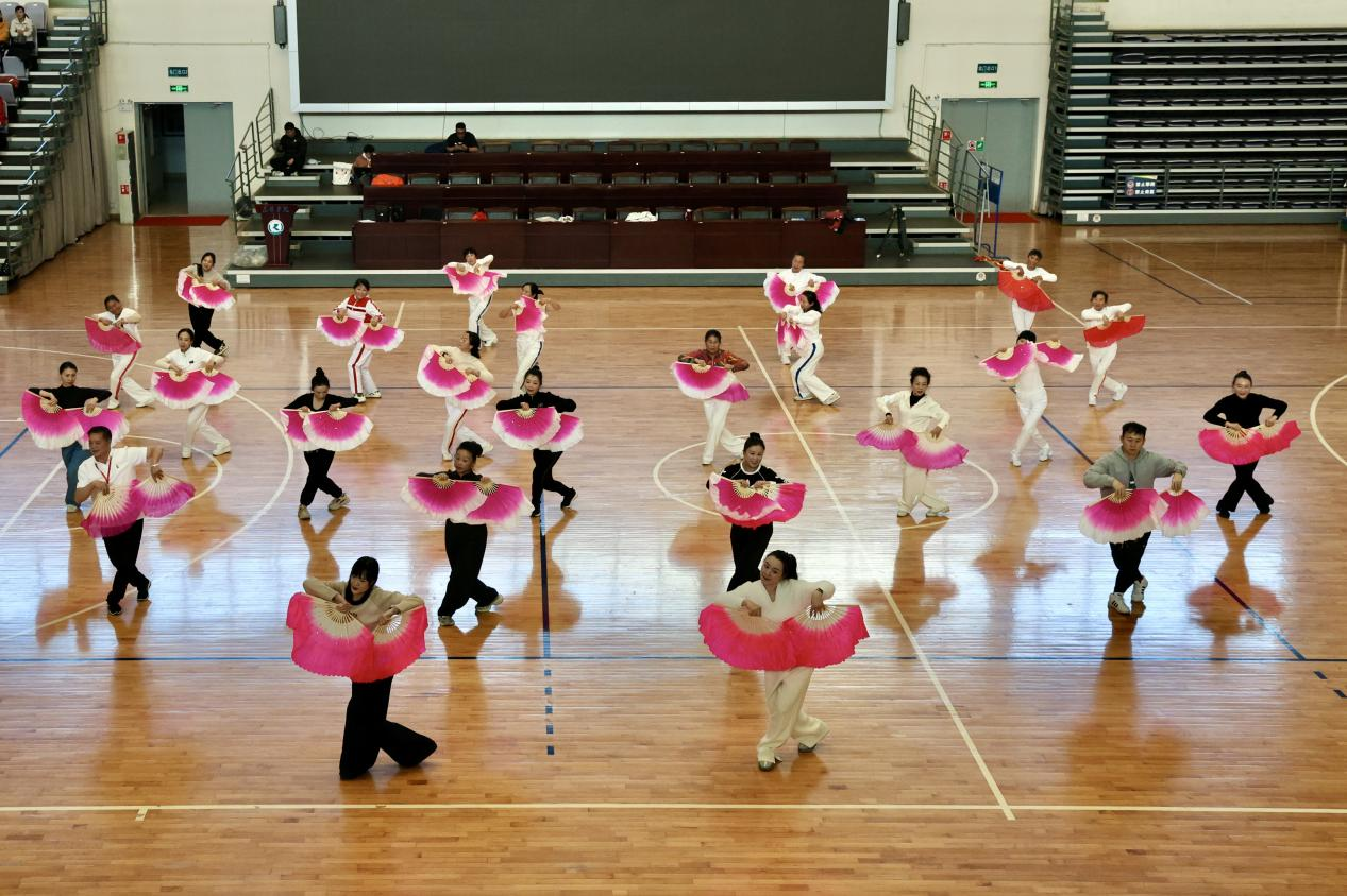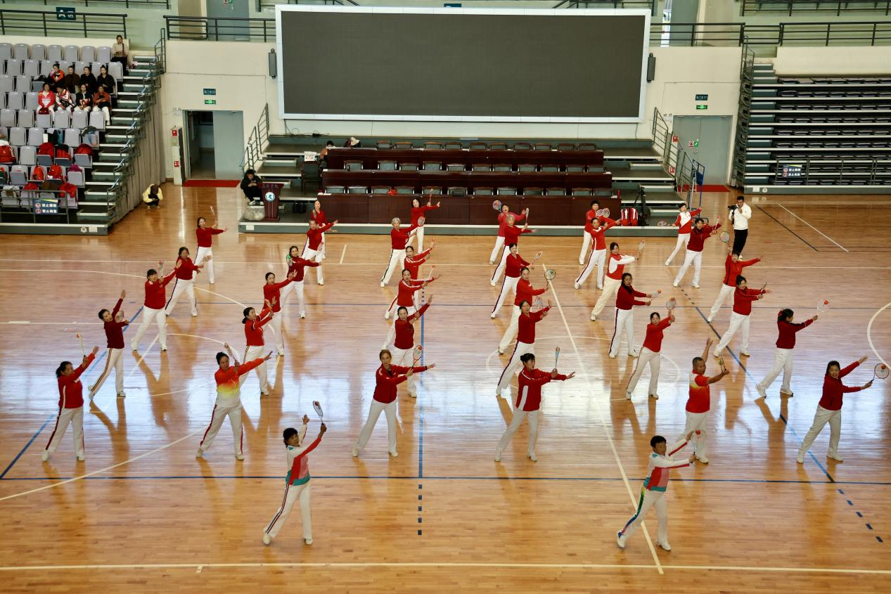 柔力球、健身操、激光跑三个专项班同样成果丰硕。柔力球班将太极、武术韵味融入套路教学,动作沉稳舒展;健身操班带领学员精研国家体育总局推广的健身操舞《桃花红杏花白》,扇子与舞姿相映成趣,观赏性与健身性兼具;激光跑班从理论学习到跑射实操衔接,系统传授这一新兴项目技能,为基层健身注入新潮活力。