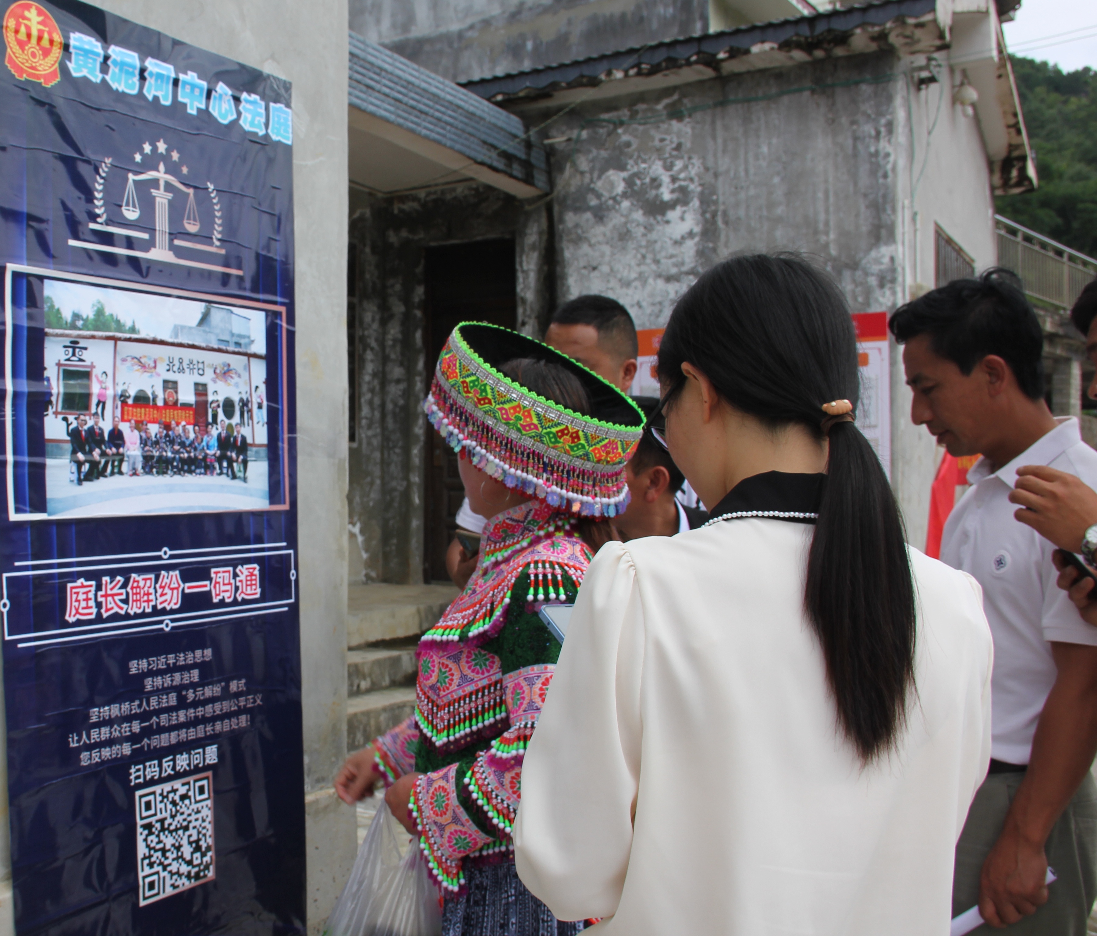 此外,法庭推动诉讼服务向网上延伸,在超市、农贸市场、学校、村寨等推广“庭长解纷一码通”,构建了一张高效便捷的解纷网。这些举措不仅提升了司法效率,更让法治精神以更细腻的方式融入百姓日常生活。