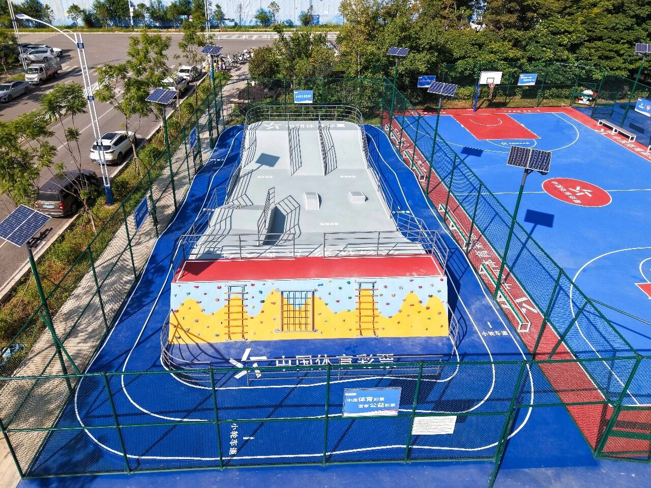 云南体彩于2023年开始全面推动中国体育彩票体育运动公园建设。当年,首座公园在昆明市禄劝县民族体育活动中心落成,将沥青篮球场升级为硅PU塑胶场地,加装了LED照明及防护网等设施,并搭配两套公益金援助的健身路径,为当地居民带来专业化、多元化的健身场景。2024年,楚雄州武定县、保山市腾冲市相继新增4座中国体育彩票体育运动公园,其中,武定县的公园引入了智能光控、无人值守系统及太阳能供电的智能健身路径,腾冲市的公园则首次建设有羽毛球场。今年的中国体育彩票体育运动公园进一步丰富体育设施类型,首次建设了滑板、小轮车场地以及五人制足球场,不断满足不同群体的健身需求。