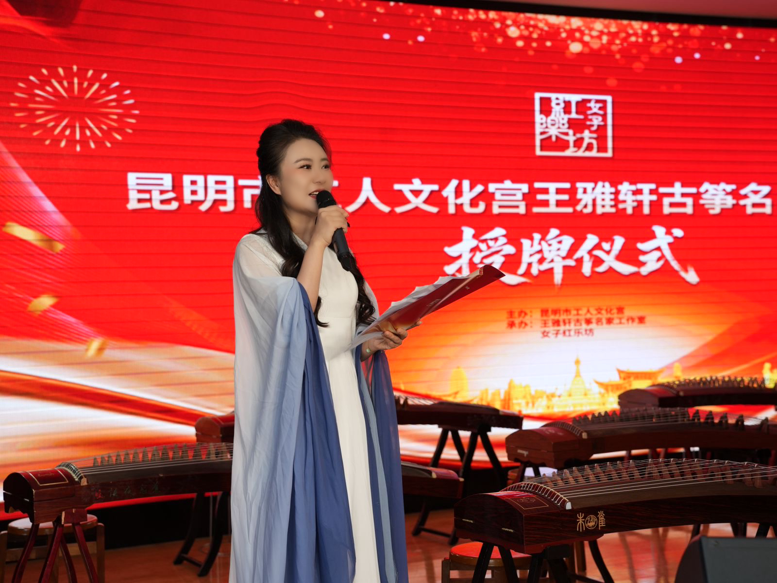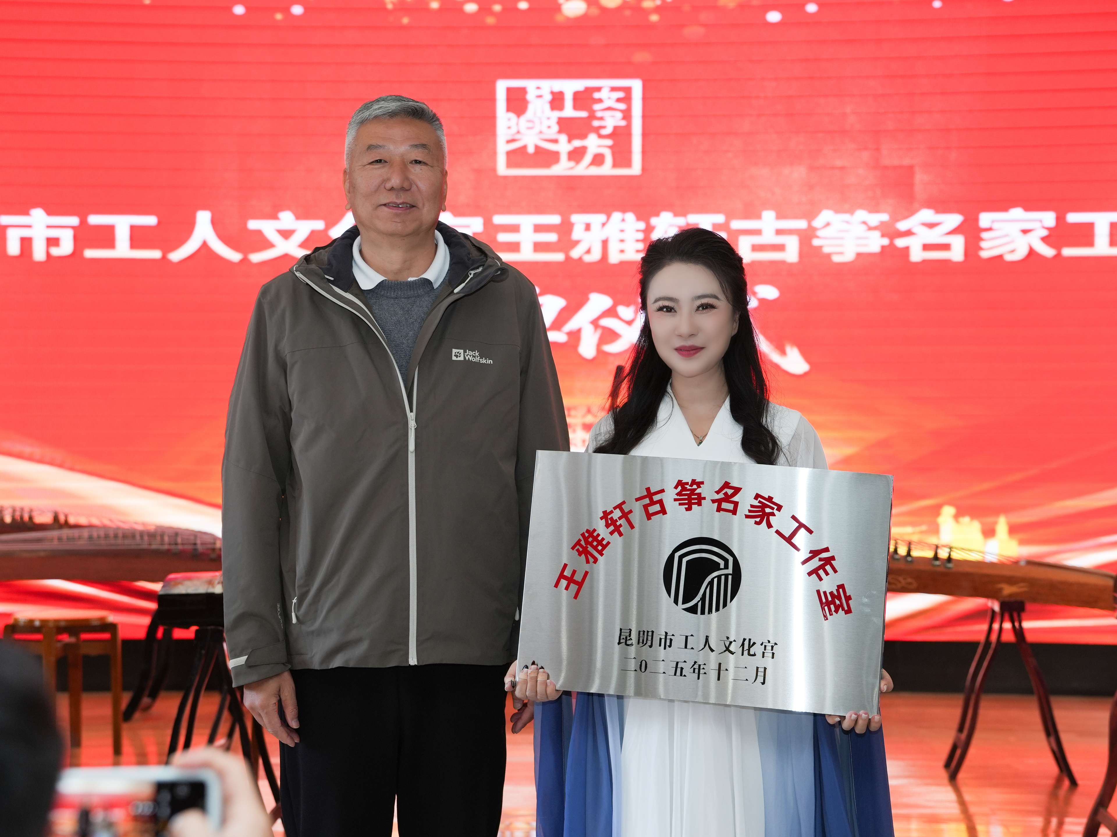 12月20日,王雅轩古筝名家工作室在昆明市工人文化宫举行授牌仪式,该工作室的挂牌是文化宫推动转型升级、打造综合性职工服务阵地的重要一步,昆明市工人文化宫相关负责人向工作室负责人、青年古筝演奏家、女子红乐坊创始人王雅轩授牌。