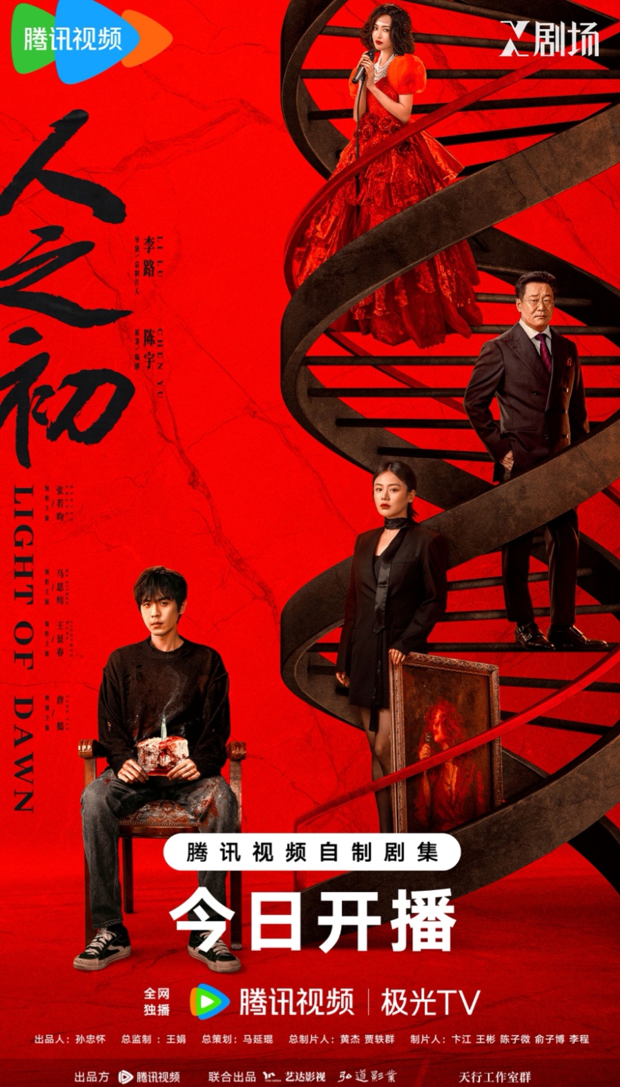 由腾讯视频出品,艺达影视、弘道影业联合出品,李路担任导演兼总制片人,原著作者陈宇编剧,黄杰、贾轶群担任总制片人,张若昀、马思纯、王景春领衔主演,唐嫣特别主演的人性伦理罪案剧《人之初》自12月27日12点起登陆腾讯视频X剧场全网独播。开播当日,官方同步释出终极预告和宿命阶梯版海报,在破解身世谜团的过程中,逐步揭开这场围绕血缘、因果与人性选择而展开的深刻叙事。