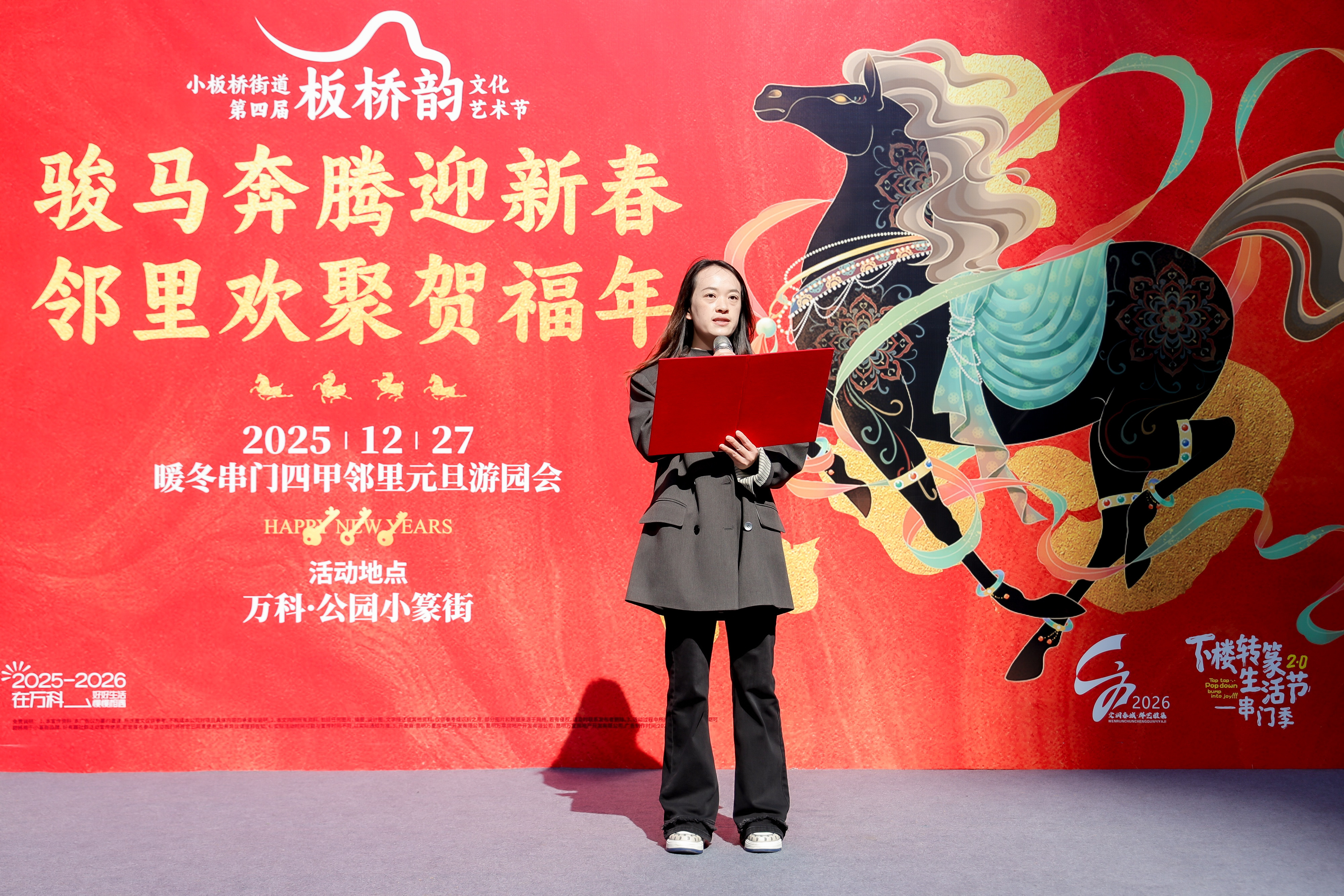 12月28日,为期两天的小板桥街道第四届“板桥韵”文化艺术节、下楼转篆生活节暖冬串门四甲邻里元旦游园会圆满落幕。作为昆明万科一年一度的邻里盛事“下楼转篆生活节”的年度压轴终篇,本次活动由小板桥街道四甲社区牵头,联合万科·公园小篆街共同举办,以“循环·共创·温暖”为主线,通过系列互动体验,成功营造了岁末邻里相聚的温馨氛围,为社区生活注入了崭新活力。
