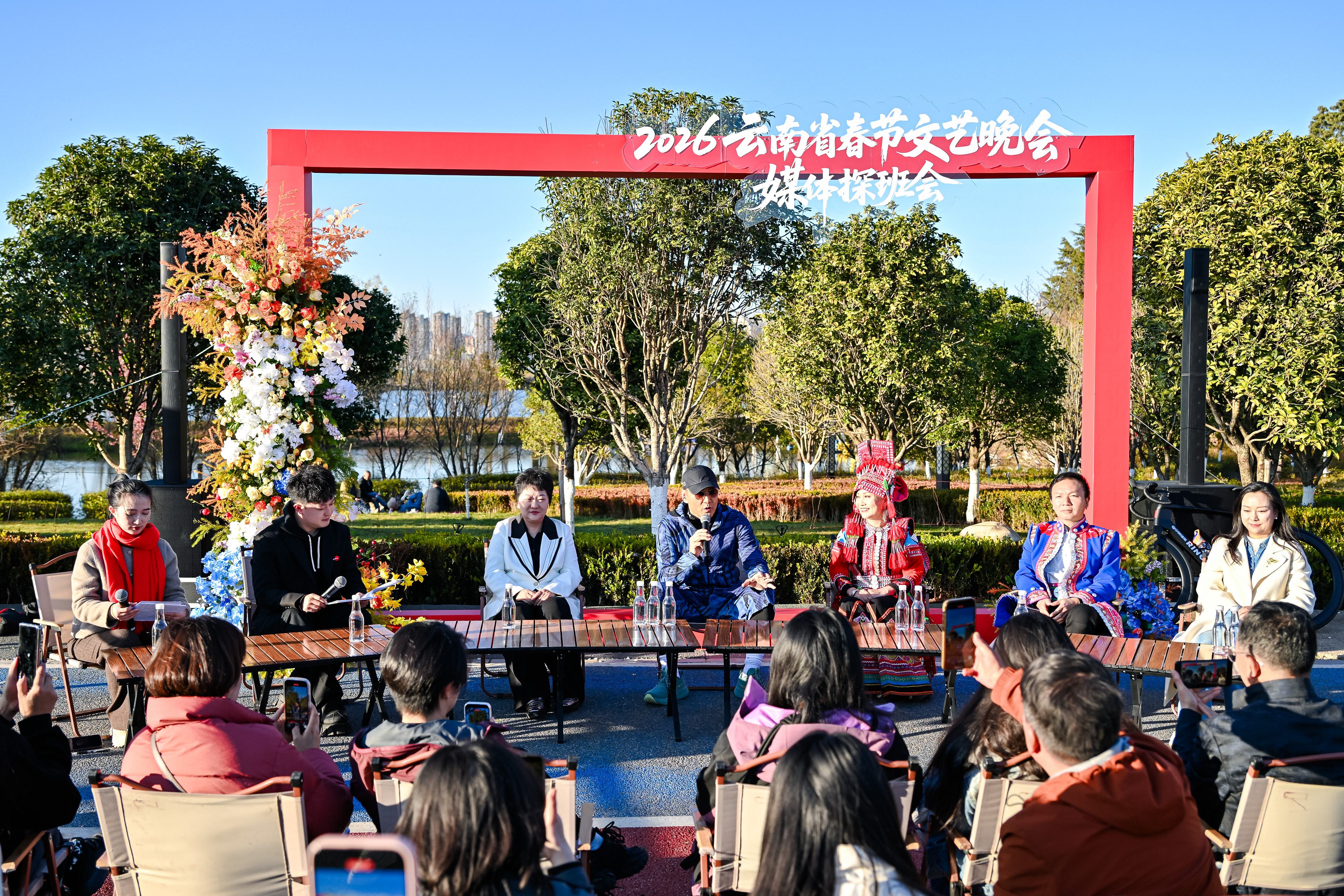 目前,晚会已在北京、昆明、西双版纳、丽江、普洱等地完成过半节目录制,五百余名演职人员参与创作演出。通气会结束后,节目组还将在滇池东岸拍摄由于荣光担纲主角的春晚情景音诗画,进一步丰富晚会的文化表达层次。
