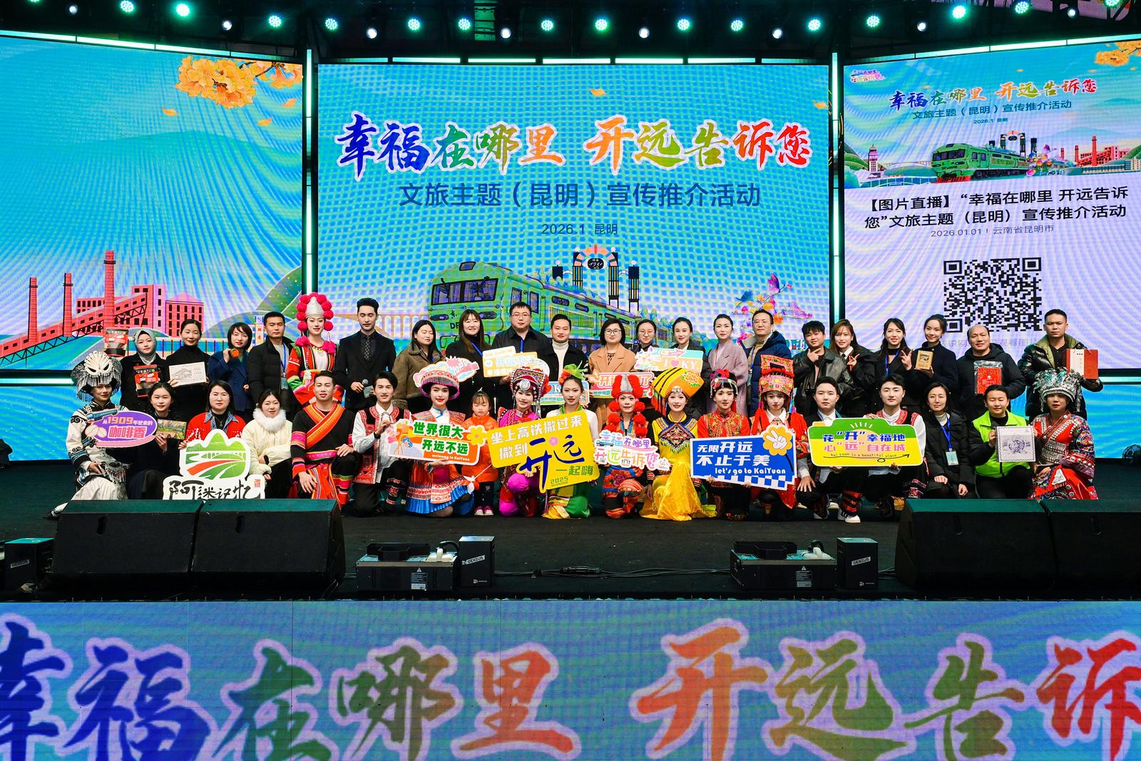 新岁伊始,暖意融融。2026年1月1日,开远市文化和旅游局主办的“幸福在哪里开远告诉您”文旅主题推介活动在昆明同德广场启幕。开远市人民政府副市长姜芳现场推介旅游资源,解读开远“开放基因、生态底气、烟火日常、发展活力”的幸福密码。