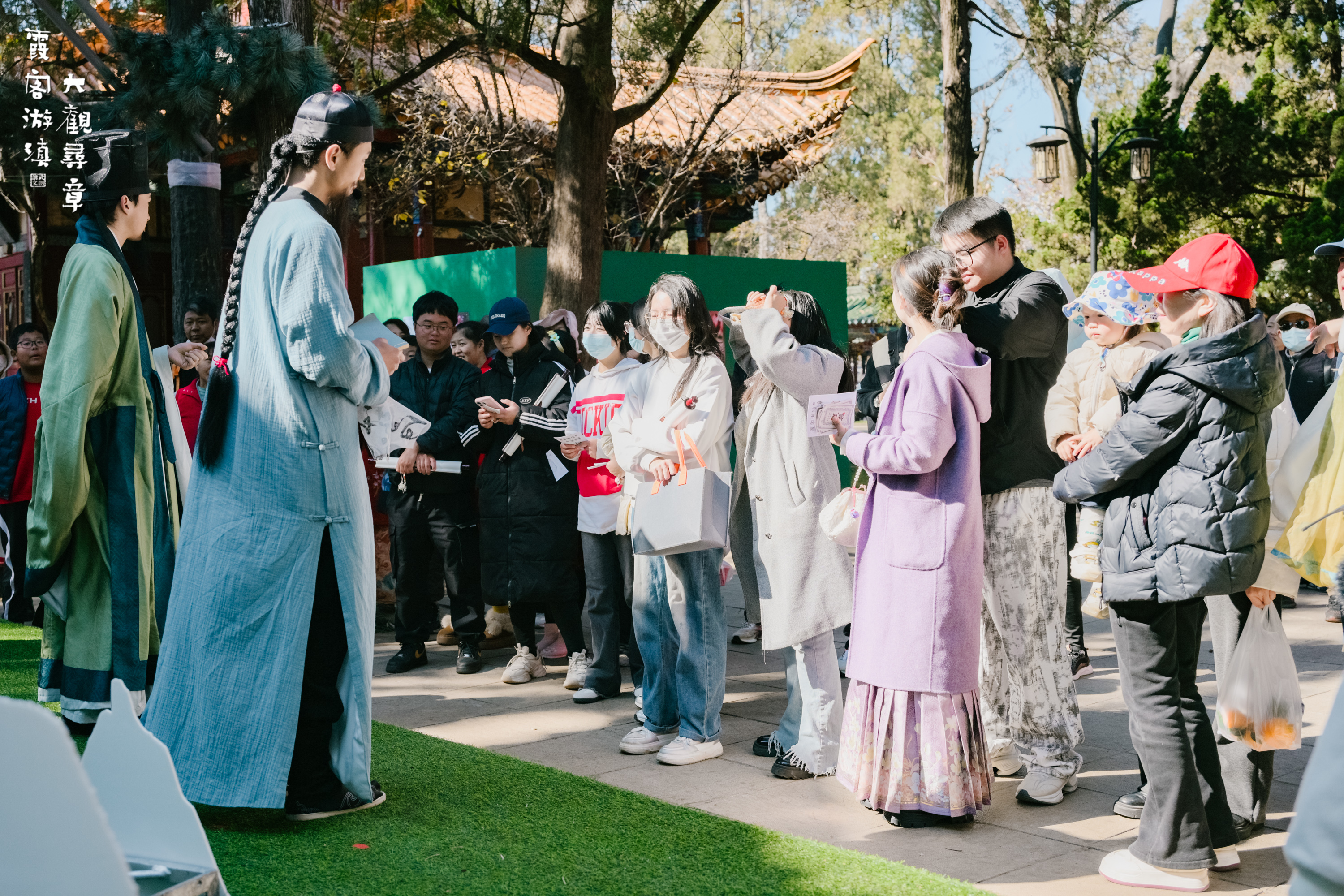 线上AI互动、线下真人NPC演绎……活动中,市民游客一起在真实的亭台楼阁边逛边玩,开启新年第一场时空穿梭之旅。“作为外地游客,我觉得传统游览容易浮于表面。但这个剧本游设计得非常‘内行’。”南京游客韩正明告诉开屏新闻记者,“它让大观楼从一个‘景点’变成了一个‘文化现场’。我拍的不是风景照,而是我在游览过程中的发现。活动让游客从消费者变成参与者,甚至共情者,这才是文旅融合该有的样子。”