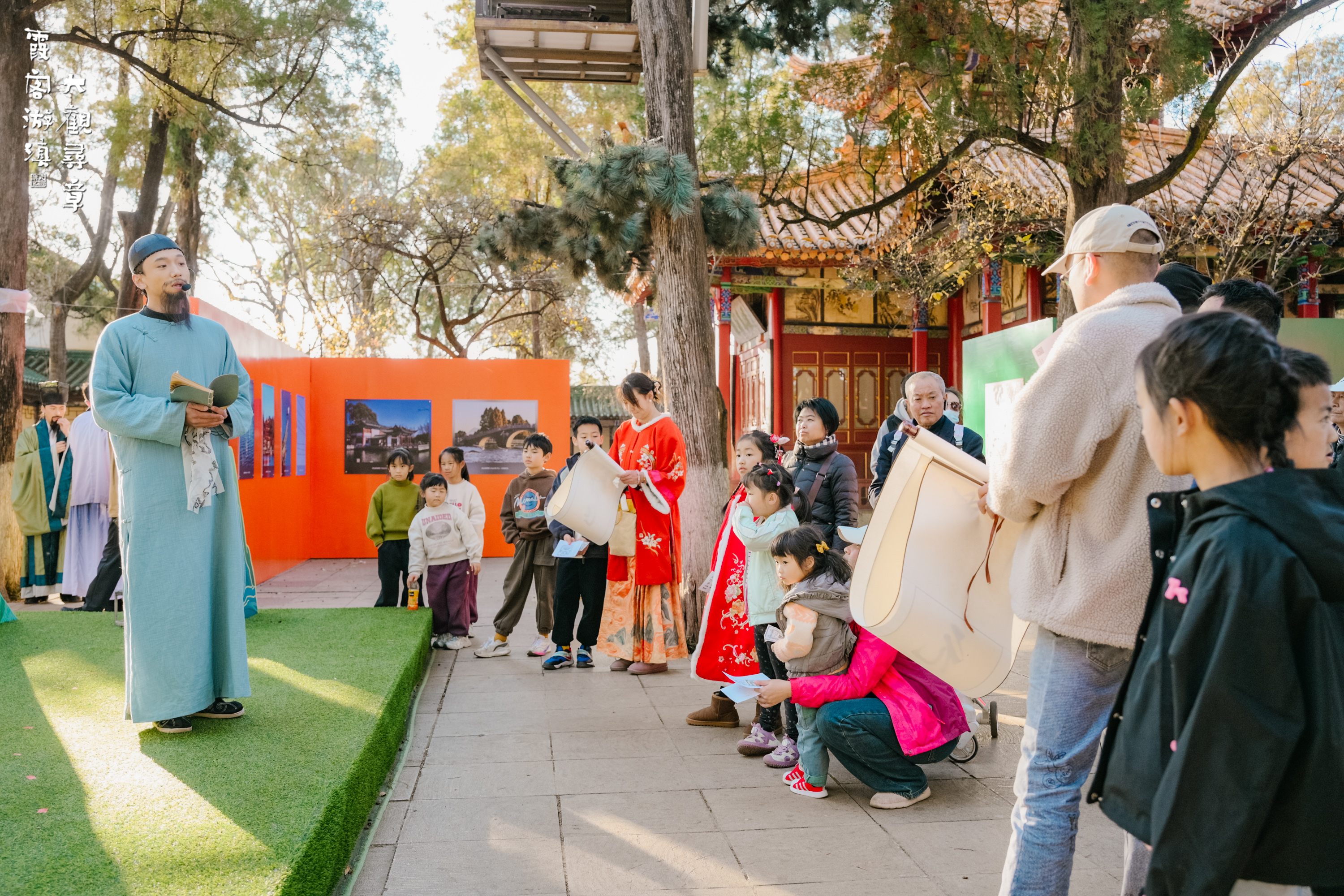 据介绍,从1月1日起,1月份的每个周末,昆明大观公园近华浦景区将变成一个动态开放的“实景剧场”,将“游圣”徐霞客的滇中之行转化为可互动、可感知的沉浸式游戏。游客购票后,即可化身为“历史探寻者”,与现场NPC互动,在孙髯翁的长联下、在滇池畔的烟波中,寻找徐霞客当年留下的“残章”,景区的一砖一瓦、一联一匾,都将成为剧情的一部分。