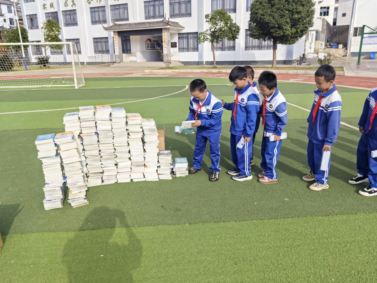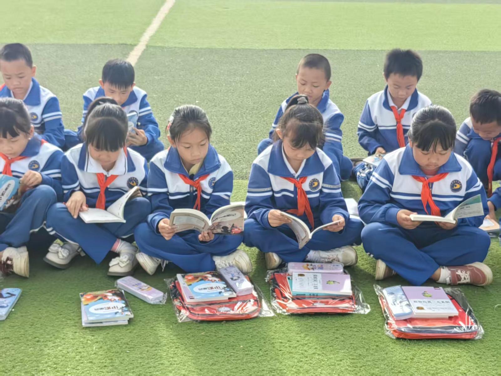 大营完小的操场上,堆满了大连大学、云南民族大学等七所高校寄来的崭新书籍和文具。同学们依次领取后,便迫不及待地在操场上围坐一圈,翻开书籍津津有味地阅读起来。有的孩子被童话世界深深吸引,有的在笔记本上认真写下新年愿望,还有的打开文具包装,互相热情地分享获得新文具的惊喜。