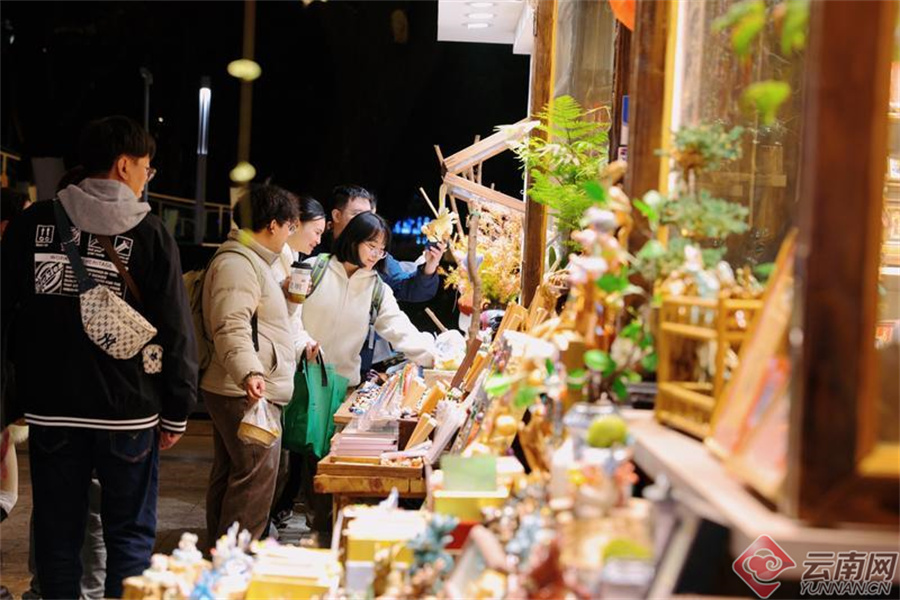 元旦假期,人们在南强街巷选购昆明特色文创产品。