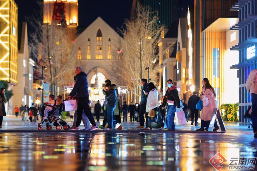 元旦假日,昆明各大商业区披上璀璨霓虹,充满热闹的烟火气。公园1903商业广场灯火璀璨,南强街巷烟火气十足,台北街与仕林街人流交织,全城商圈跃动不眠。昆明的夜间生活圈,吸引市民游客漫步购物、品味美食、欢聚畅聊。灯光不仅点亮街区,更照亮消费新图景——昆明正以特色夜间经济推动旅游体验与城市活力同步升级。
