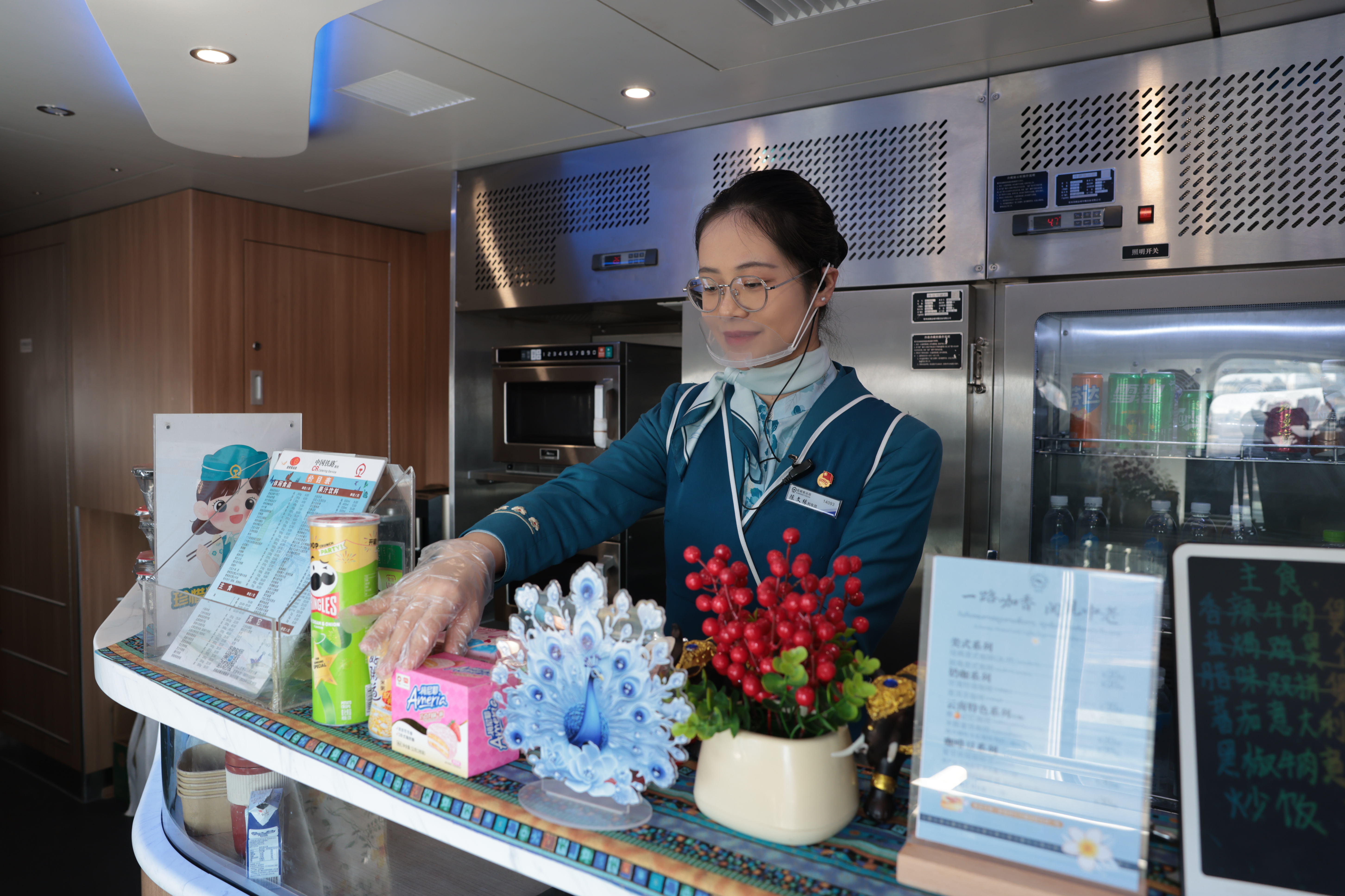 精心组织跨境旅客运输,中国昆明至老挝万象间开行的国际旅客列车增至4列,单趟旅客列车跨境旅客席位达420个,出入境人数最高达1400人次,累计发送跨境旅客28.2万人次,为旅客跨境旅游、学习、经商等提供了极大便利。中老两国铁路部门持续优化站车服务,推出了一系列便民利民惠民举措,着力打造“舌尖上的列车美食”,备受各国旅客喜爱,“坐着火车游中国”“坐着火车游老挝”已成为跨境游客的首选。