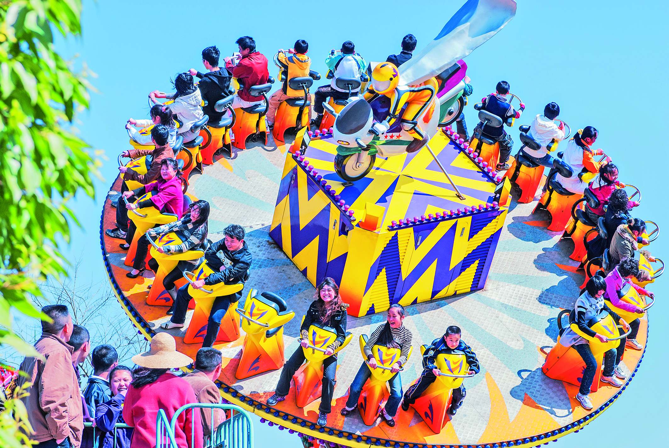 在大观公园游乐场感受快乐与刺激的青少年。刘建明摄于2008年