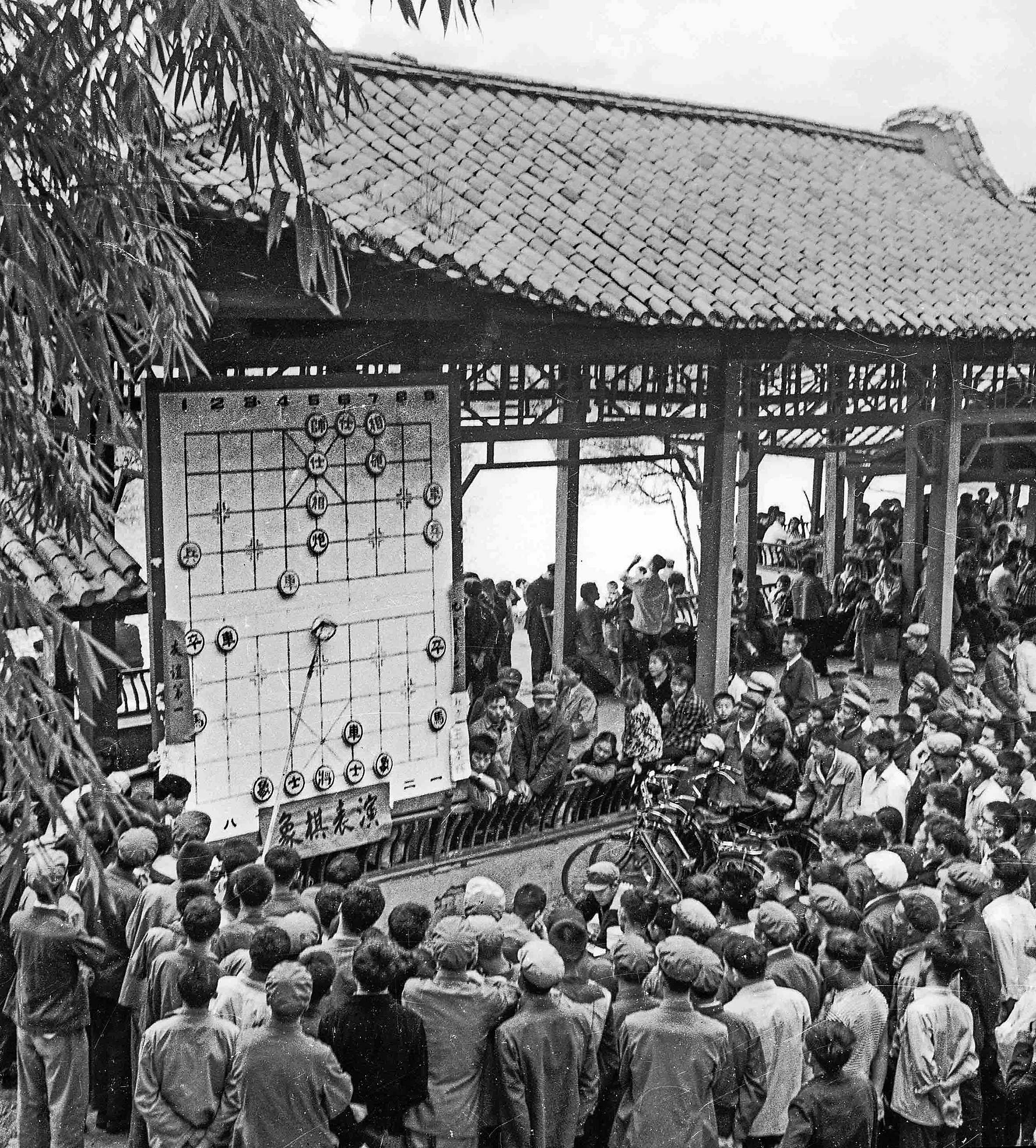 1976年5月1日,大观公园组织开展的象棋表演吸引众人围观。 刘建明 摄