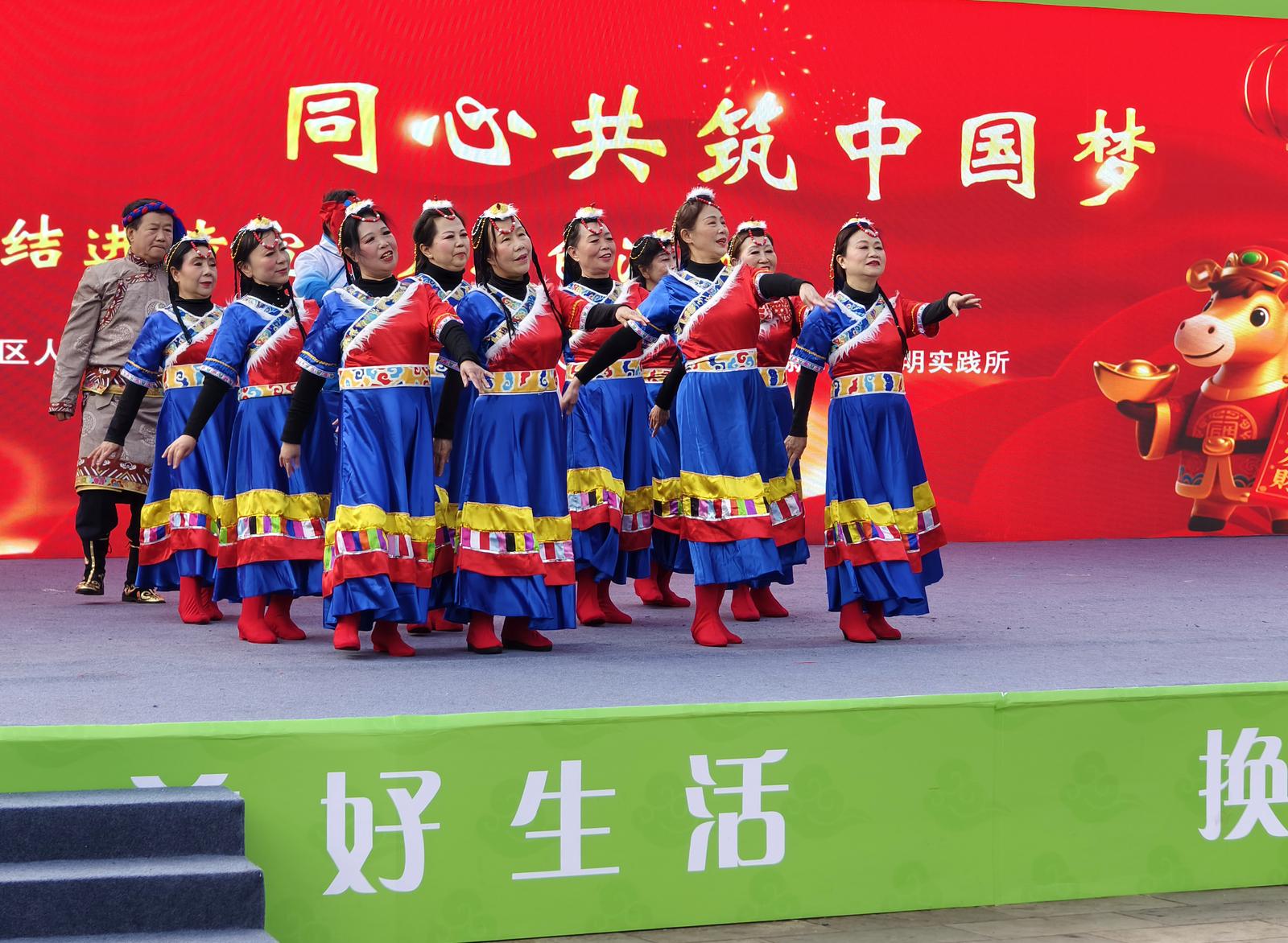 舞台之上,民族风情与时代旋律交相辉映。藏族舞蹈《共产党来了苦变甜》跳出感恩情怀,彝族舞蹈《彝家的月亮会唱歌》展现民族韵味,花灯舞蹈《快乐好心情》传递市井欢腾,歌舞《领航》奏响奋进强音,一系列精心编排的节目轮番上演,现场掌声不断。演员们以饱满的热情、灵动的舞姿,展现出各族群众昂扬向上的精神风貌,也让观众在欢歌笑语中感受传统文化与现代艺术的和谐交融。