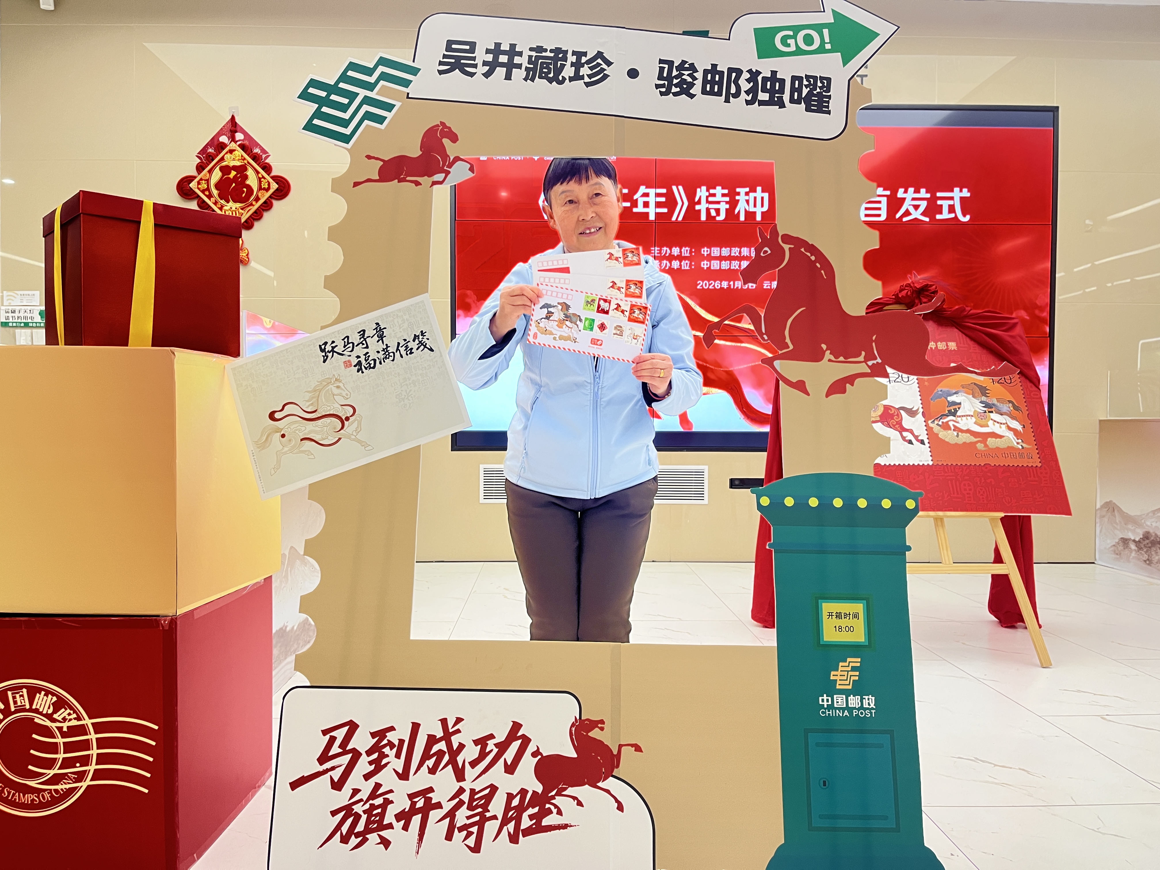 吴井路邮政支局为属马市民推出专属权益—现场属马市民均可获得赠礼一份。同时,购买“马”年任意邮品赠送“马”年限定产品;发布《丙午年》集藏卡(融合城市地标与马年元素),现场限量赠送;设置“集戳专区”,提供4款马年主题纪念戳及“马年”套色印戳;设置“互动创作台”;特色互动活动(有奖问答、打卡赢礼):在邮票发售区、文创区,参与者集齐2个展区3枚及以上印章,可兑换马年主题小礼品,限量50份。
