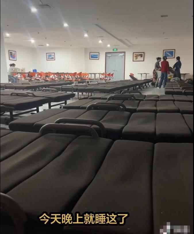 该工作人员还介绍,旅客过夜可以选择租折叠床过夜,机场内也有免费的躺椅,“折叠床是有男女分区的,是用隔板分开的”。