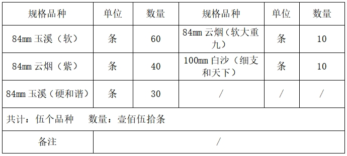 2026年1月5日,我局执法人员在昆明市呈贡区彩龙街强顺物流园3栋9-10号老挝通泰海陆空国际物流查获卷烟:84mm玉溪(软)60条、84mm云烟(紫)40条、84mm玉溪(硬和谐)30条、84mm云烟(软大重九)10条、100mm白沙(细支和天下)10条,共计5个品种150条,并依法予以先行登记保存。