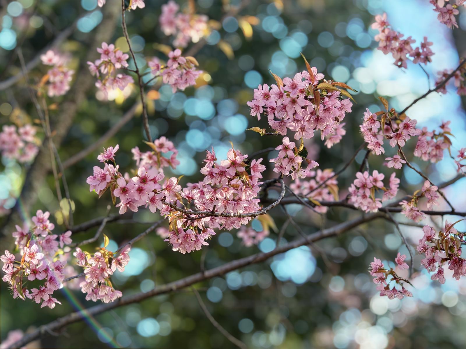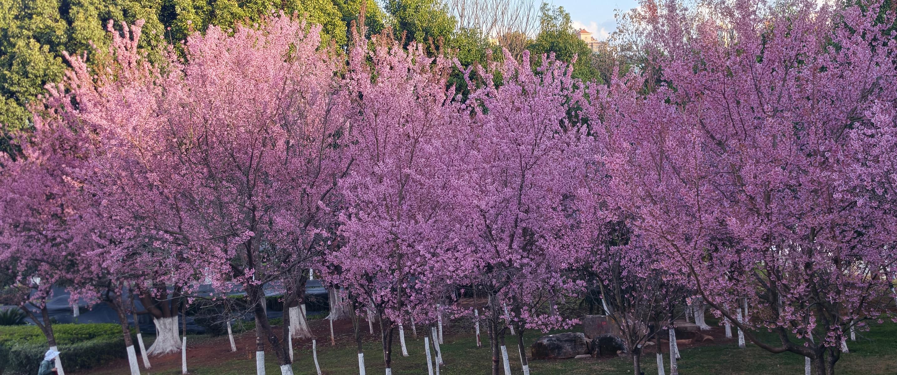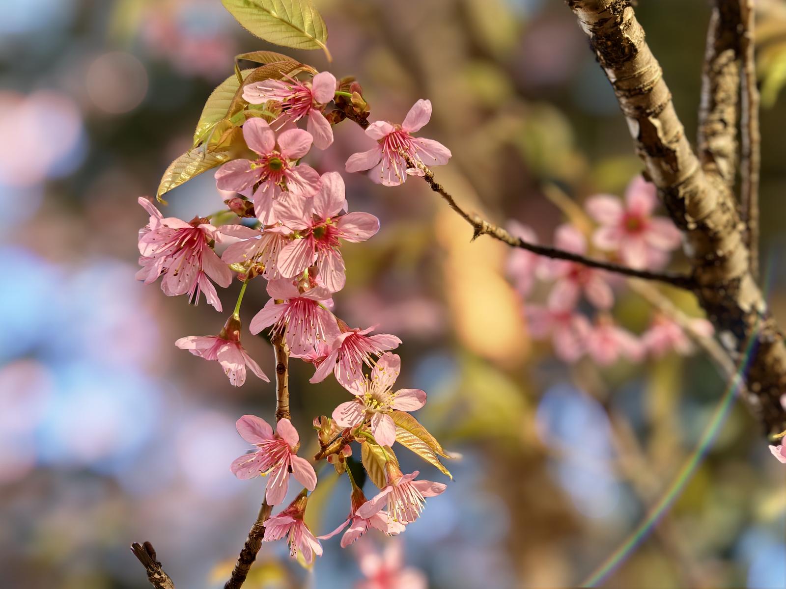 远远望去,粉绯花潮连绵起伏,宛若天边轻拢慢捻的云霞,温柔地铺展在天地间。花团密密匝匝地缀满枝丫,将隆冬晕染出几分柔媚春意。阳光穿枝拂叶,洒下斑驳光影。漫步花海,脚下是松软的落叶簌簌作响,身旁是烂漫花潮随风轻摇,耳畔是清脆鸟鸣婉转悠扬,共同交织成惬意安然的冬日盛景。