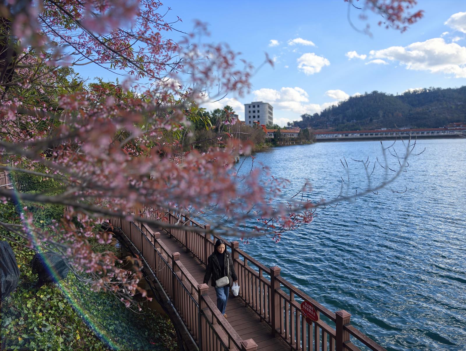 当岁末年初的寒风拂过,玉溪市易门县迎来了一场绮丽的花之盛宴。龙泉河畔,冬樱花烂漫绽放,铺展成一幅旖旎多姿的冬日画卷。