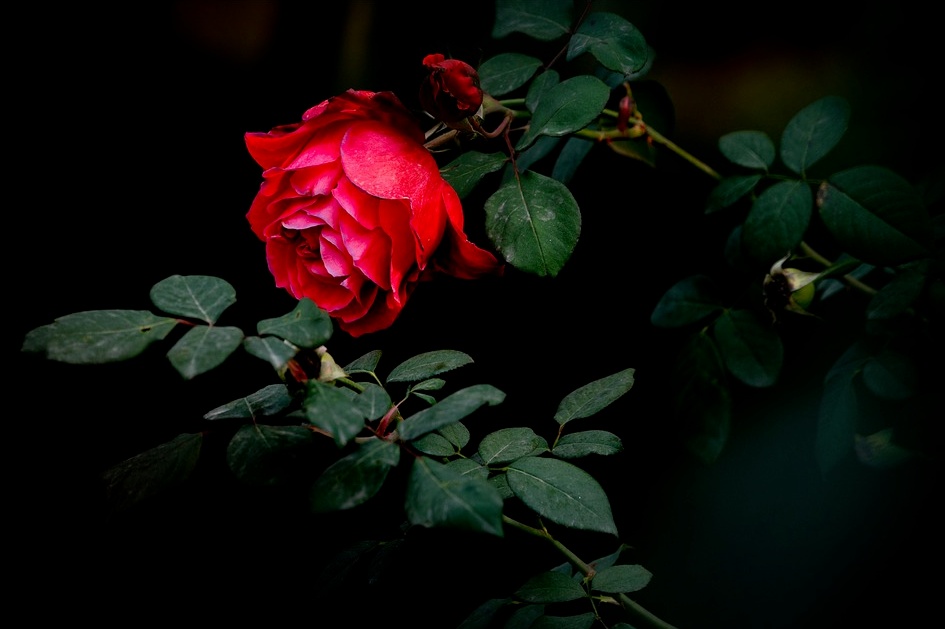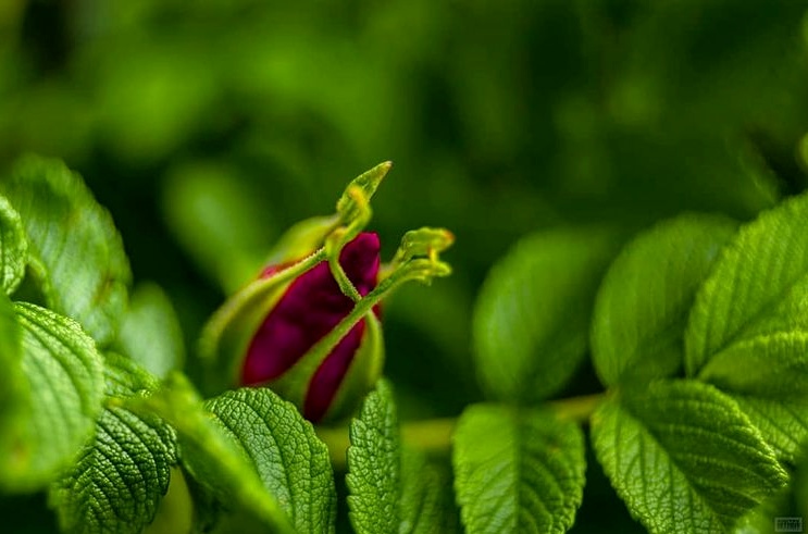 月季每组副叶上只长有5片以下的小叶片,并且小叶较为圆润粗壮,叶片表面非常光滑油亮,平整光泽,其叶片颜色也非常深。