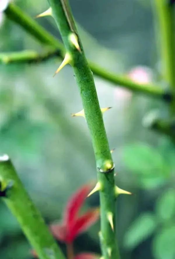 玫瑰茎刺密密麻麻,刺小且硬,所以才有“带刺的玫瑰”这一说法。