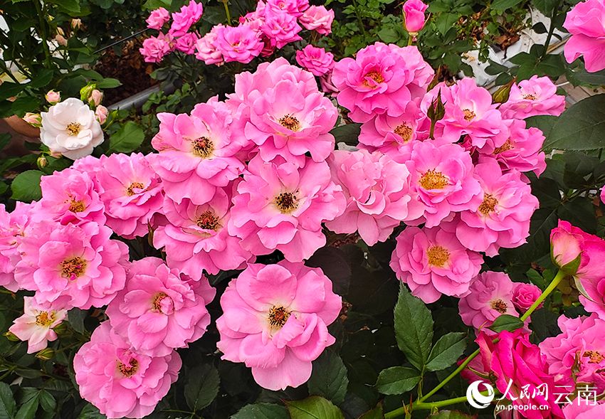 ▲蔡艳飞和团队选育的月季新品种(图源:人民网 记者 符皓 摄)