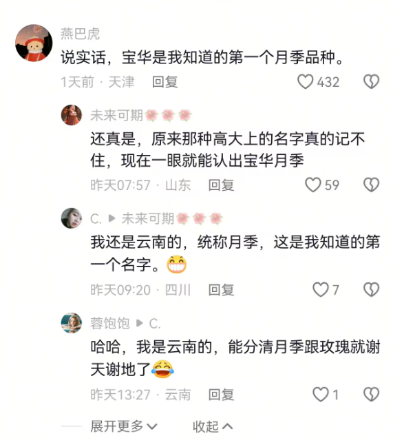 评论区许多网友表示,“宝华”是自己知道的第一个月季品种。