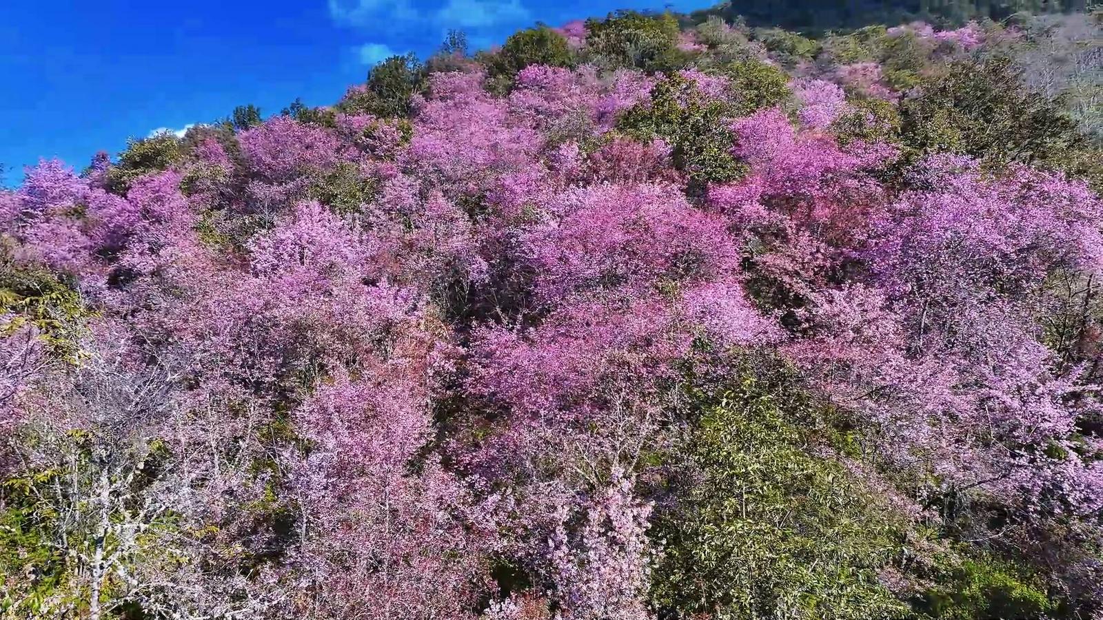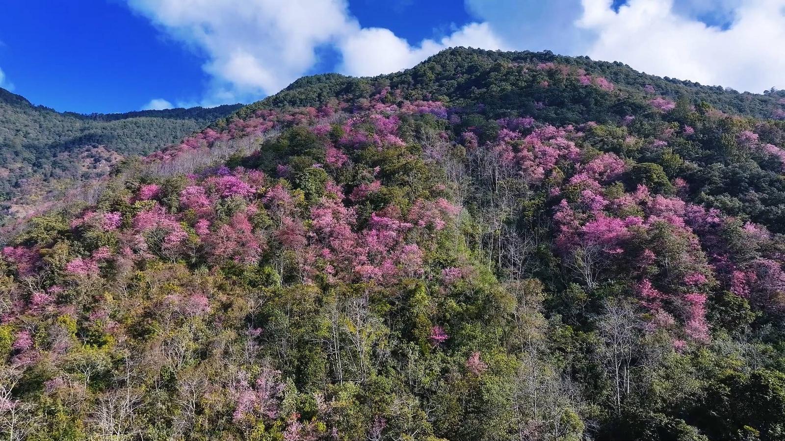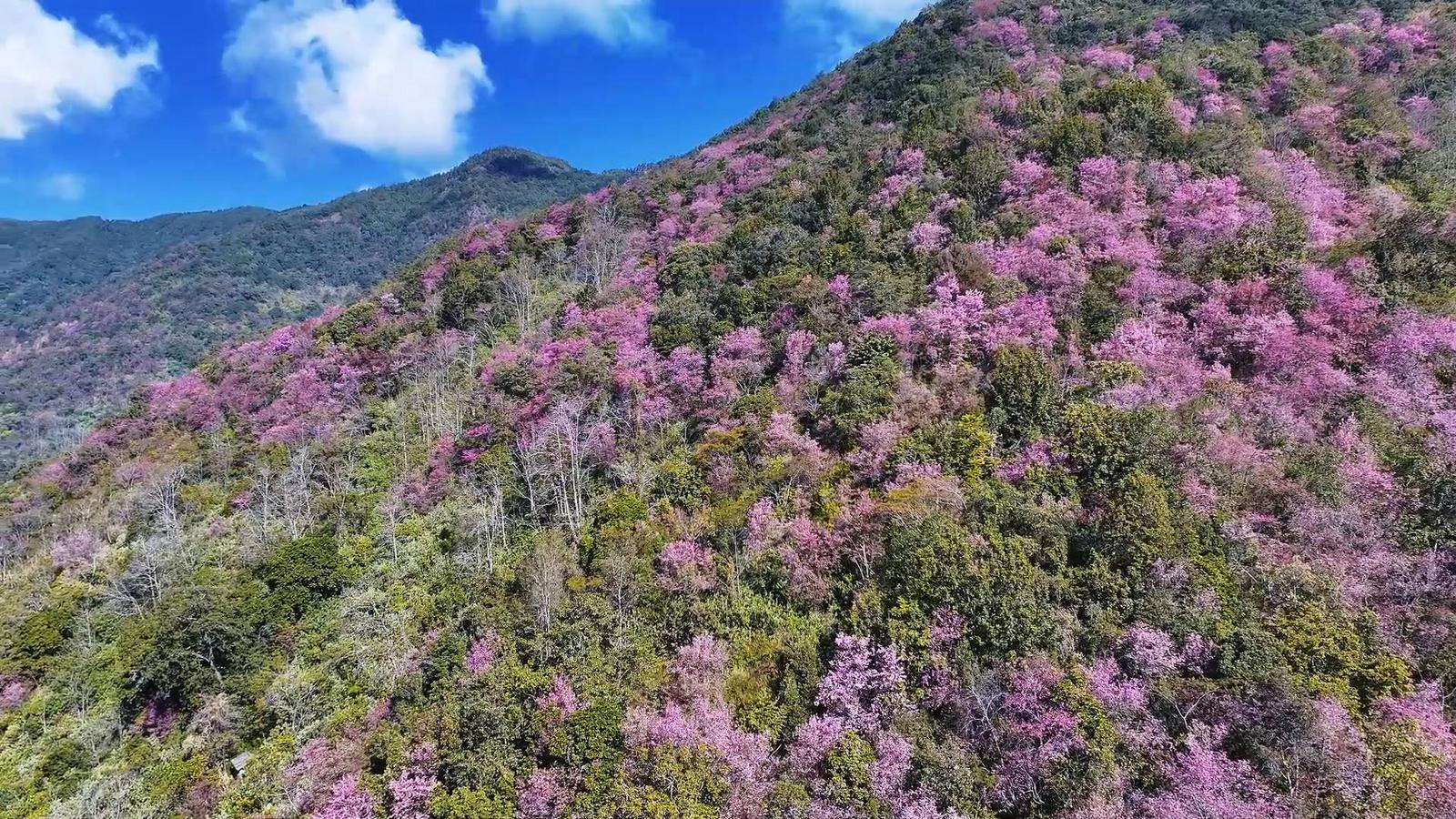 近日,保山市施甸县善洲林场东麓的十万余株野生冬樱花绚丽绽放,进入最佳观赏期,漫山粉白花海吸引了大批游客慕名前来打卡,感受冬日里的“春日暖意”。