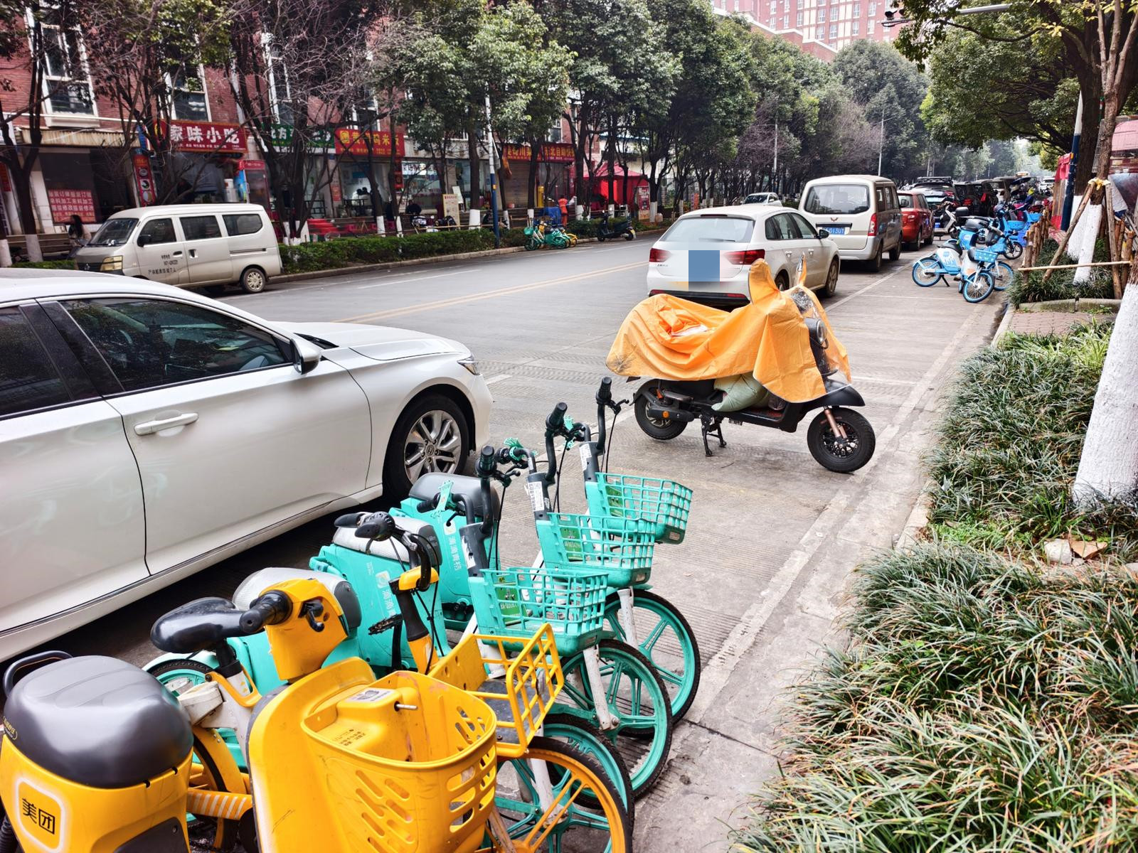 该位女士称,她在街边开店经营,平时不将车辆停放到泊位,主要有两个原因:一是部分共享电单车会停放到停车位内无人管理,车辆要停进泊位,就得先把七八辆甚至10多辆共享电单车挪走,而周边空地有限,从这儿挪开,又会影响其他地方,所以干脆不挪;二是国资车位收费太高,停一天将近50元。