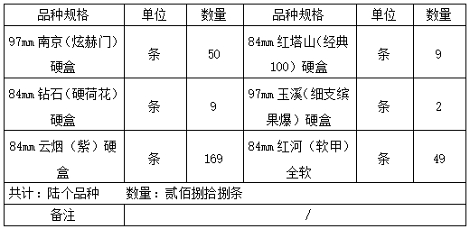 请物主自公告发布之日起60日内到云南省宜良县烟草专卖局(地址:宜良县环城西路5号;联系人:李春光;联系电话:0871-67594117)接受调查处理。若逾期不来接受调查处理,我局将依据《烟草专卖行政处罚程序规定》第七十三条及有关法律法规的规定,依法对涉案烟草专卖品作出处理。