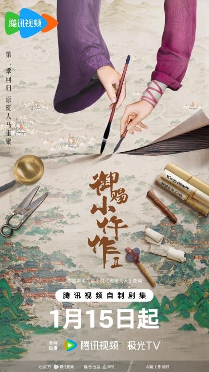 由腾讯视频出品、灵河文化联合出品,楼健执导,清闲丫头、钱小白担任编剧,王子奇、苏晓彤、杨廷东、赵尧珂等原班人马回归主演的高口碑古装探案剧《御赐小仵作2》今日官宣定档,将于1月15日在腾讯视频全网独播。该剧曾入选2024年度广东省文艺精品(文艺人才)扶持专项资金电视剧及网络剧片获扶持项目,获得广东省文艺精品扶持专项(精品创作)资金。