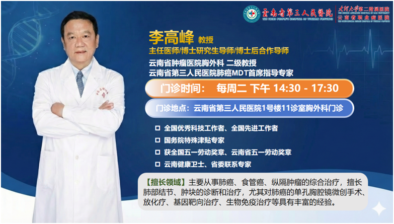 云南省第三人民医院胸外科长期专注于胸部肿瘤的综合诊疗,已构建覆盖早期筛查、精准诊断、手术、靶向免疫治疗及康复的全周期诊疗体系。此次开设名医门诊,是为了满足群众多层次就医需求,提升群众就医体验。