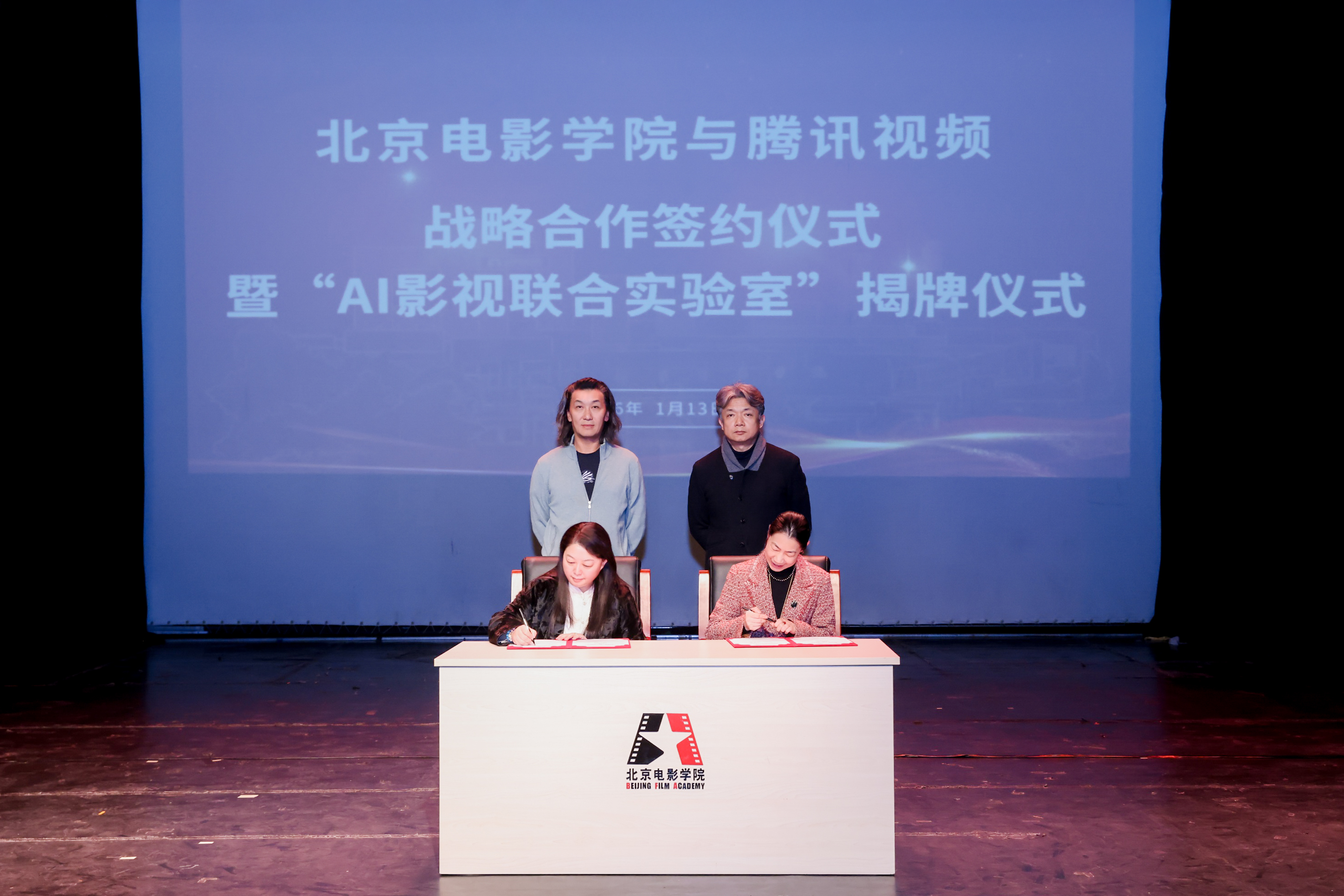 1月13日,腾讯视频与北京电影学院战略合作签约仪式暨“AI影视联合实验室”揭牌仪式在京举行,腾讯公司副总裁、腾讯在线视频董事长孙忠怀,腾讯在线视频联席总裁兼首席内容官王娟,与北京电影学院党委副书记、院长扈强,党委常委、副院长童雷,副院长潘若简等共同出席。双方将以“AI影视联合实验室”为载体,围绕AI影视项目制作与模型共建、赛事与奖项合作等方向展开深入合作,聚焦AI影视领域的科研探索、应用实践、产业协同与人才培养,推动影视产业与前沿技术的融合发展。